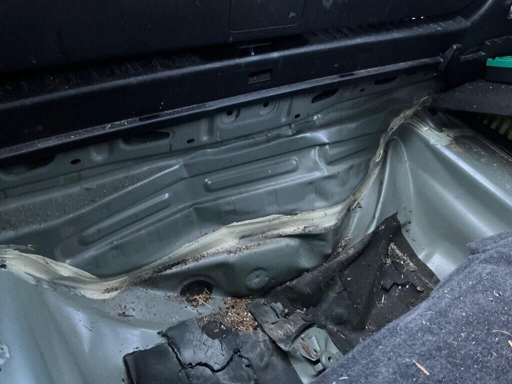 Heckklappe, Verkleidung, Querstrebe und Boden stark eingedrückt.