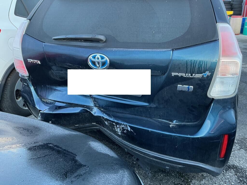 Heckstoßstange links, Spoiler, Rückstrahler beschädigt.