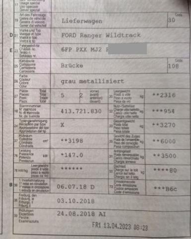 | Typenschein-Nr: | X | Letzte MFK: | 13.04.2023 |