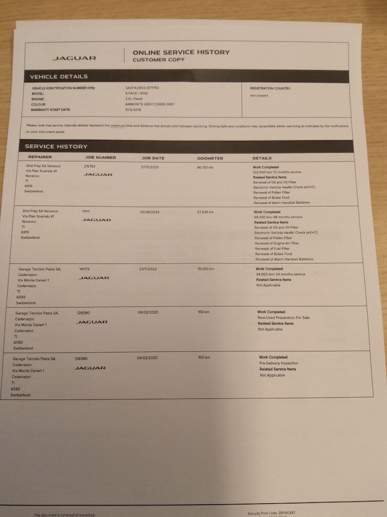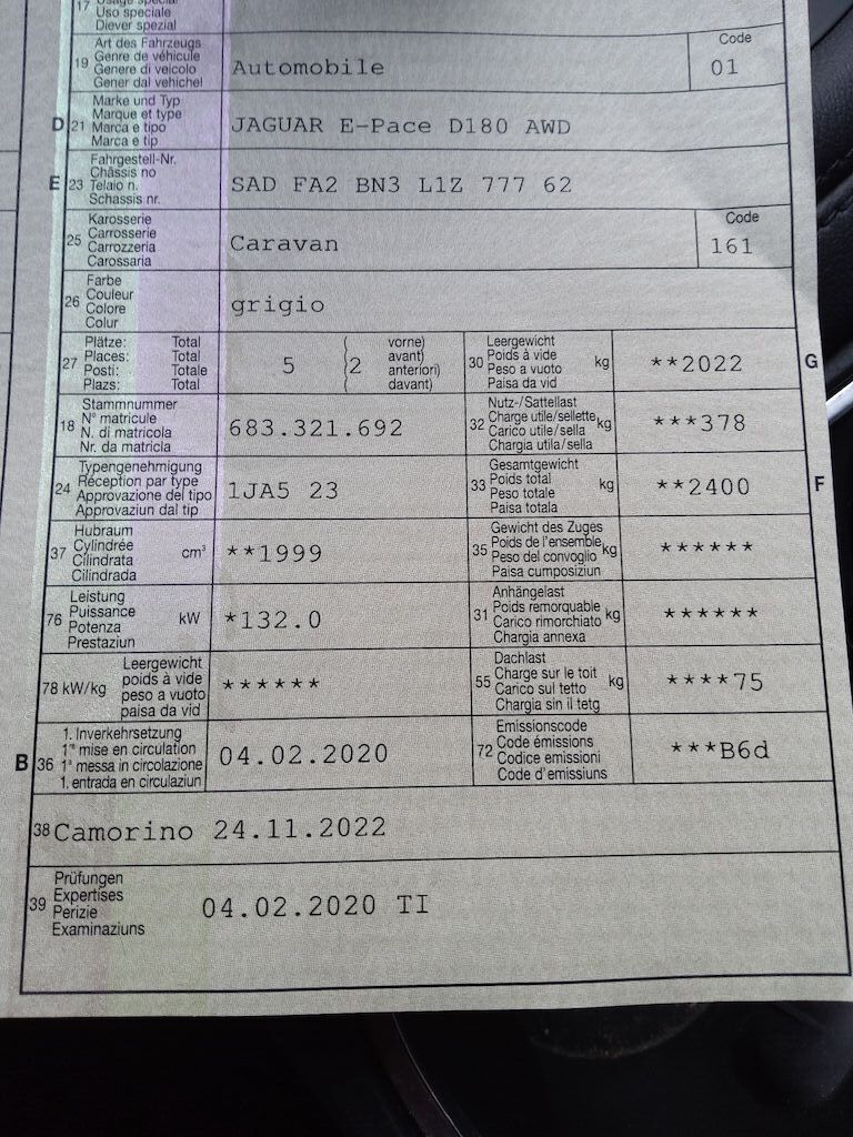 Uszkodzenia Opis uszkodzen: Non è stata effettuata alcuna ispezione tecnica (prova in officina)