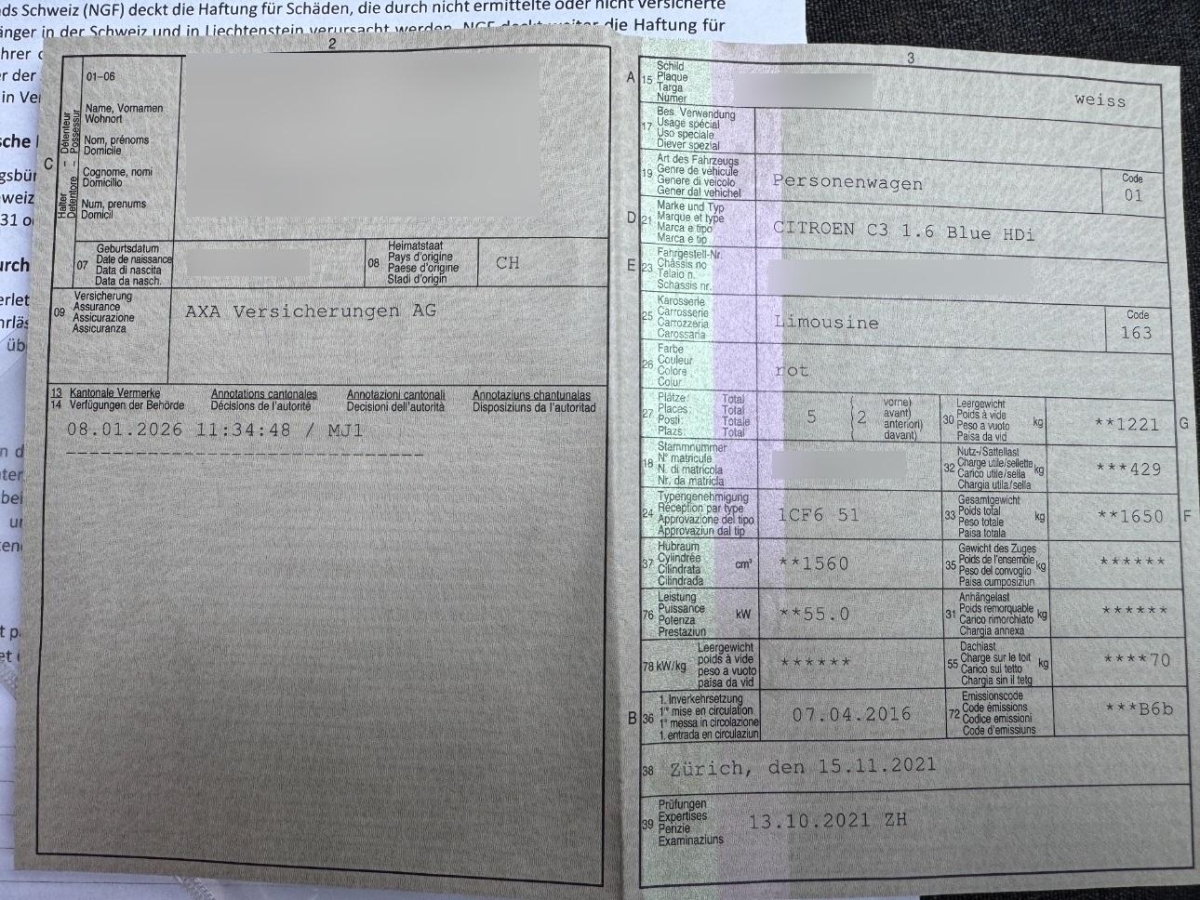 Die (vom Fahrzeugexperten) ermittelten Reparaturkosten beziehen sich auf das versicherte Ereignis. Allfällige zusätzliche, nicht versicherte Schäden/Vorschäden, sind in den Reparaturkosten nicht enthalten. Die deklarierten Ausstattungsmerkmale können von der effektiven Ausstattung abweichen.