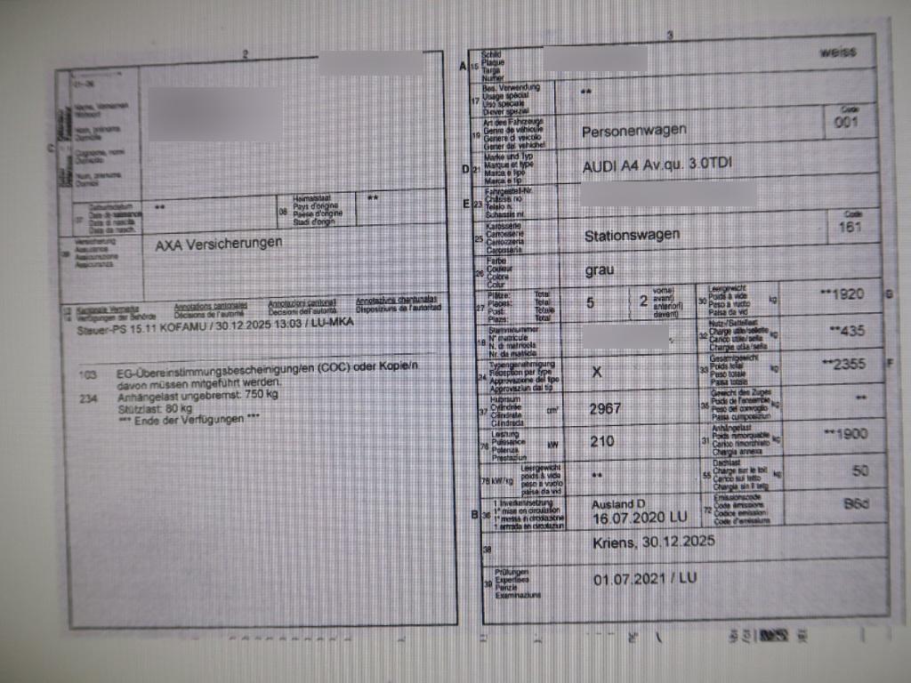 | Fahrzeugausweis | Fehlt |