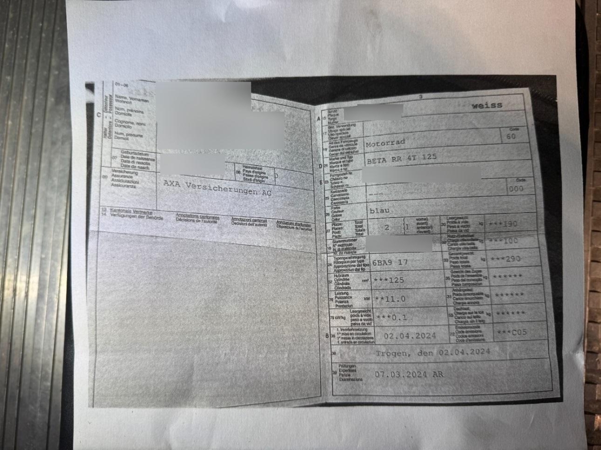 | Fahrzeugausweis | Vorhanden |