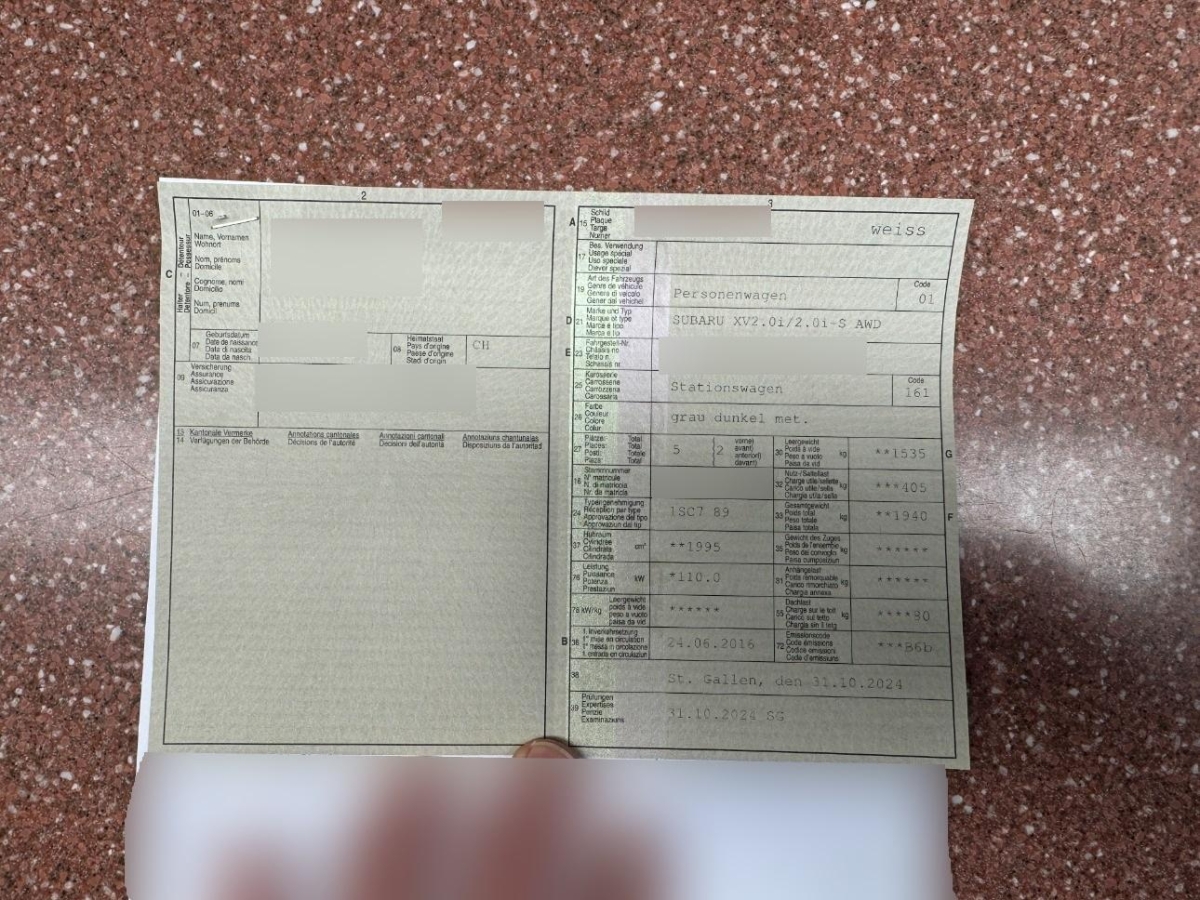 | Fahrzeugausweis | Vorhanden |