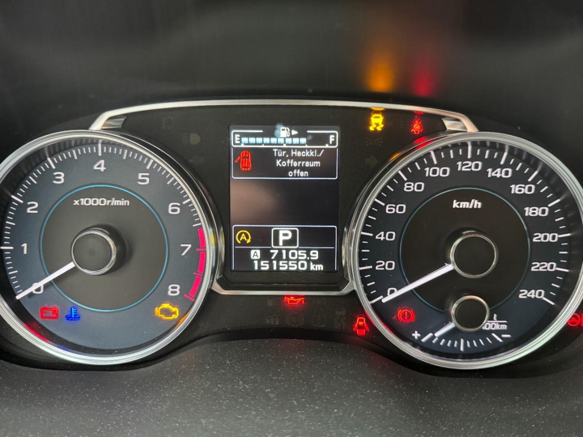 Info-Display, Drehzahlmesser, Media: Bluetooth Freisprecheinrichtung, Kopfstützen vorne höhenverstellbar, Gurtkontrolle, Reifenpannen-Kit, Höhenverstellbare Gurten vorne, Licht: Drittes Bremslicht, Elektrische Fensterheber vorne + hinten, Elektronisches Stabiliäts-Programm (VDC), Licht: Nebelscheinwerfer, 6 Lautsprecher, Licht: Tagfahrlicht, Allradantrieb permanent, Klima: 2-Zonen-Klimaautomatik, ISOFIX Kindersitzvorrichtung, Klima: Fussheizung (vorne, hinten), Digital Uhr, Airbag: Airbag Fahrer und Beifahrer, Lenkrad: Lenkrad längs- und höhenverstellbar, Sitze: Vordersitze heizbar, 4 Leichtmetallfelgen 17J mit Pneu, Polster: Stoff-Ausstattung, Steckdose, Airbag: Window-Kopfairbags, Getönte Scheiben, Licht: Nebelschlussleuchte, Frontspoiler, 6-Stufen-Automat CVT sequentiell, Lackierung: Uni-Lackierung, Media: USB+AUX-Anschluss, Lenkrad: Lenkrad-Wippschaltung (Paddles), Seitenaufprall-Schutzsystem, Katalysator geregelt, Klima: Individuell einstellbares Heiz-/ Frischluft-System, Airbag: Knie-Airbag für Fahrer, Stopp-/Start-System, Fahrersitz 8-fach manuell verstellbar, Dunkel getönte Seitenscheiben hinten, Aussentemperaturanzeige, Zentralverriegelung mit Fernbedienung, Pollenfilter (Staubfilter), Räder: Reifendruck-Kontrollanzeige, Lenkrad: Multifunktionslenkrad, Assist: Tempomat, Wegfahrsperre elektronisch, Laderaumabdeckung, Assist: Bremsassistent (BAS), Tageskilometerzähler, ABS, EBD elektronische Bremskraftverteilung, Assist: Rückfahrkamera mit Monitor, Gurtstraffer mit Gurtkraftbegrenzer, Aktive Kopfstützen, Scheibenwischer vorne mit Intervall, Ablagefach, Servolenkung, 3-Punkt-Sicherheitsgurte auf allen Plätzen, Blinker in Aussenspiegel, Cupholder, Sitze: Rücksitzlehne geteilt abklappbar, Radiovorbereitung, Dachantenne und, Airbag: Seitenairbag für Fahrer und Beifahrer, Heckscheiben-Wisch-/Waschanlage mit Intervall, Vorbereitung für Dachträger, Tankdeckel-Entriegelung von innen, Radio CD, MP3 und WMA, Aussenspiegel rechts und links beheizbar und elektrisch verstellbar, Licht- und Regensensor