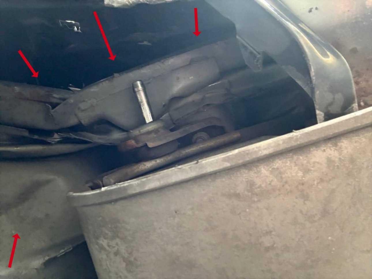 Auspuffanlage, Diverse Anbauteile, Heck, Heck links, Heck rechts, Heckblech, Heckdeckel, Hinterachse, Längsträger hinten rechts, Radhaus hinten rechts, Rücklicht links, Rücklicht rechts, Seitenwand links, Seitenwand rechts, Stossstange hinten, Türe vorne rechts