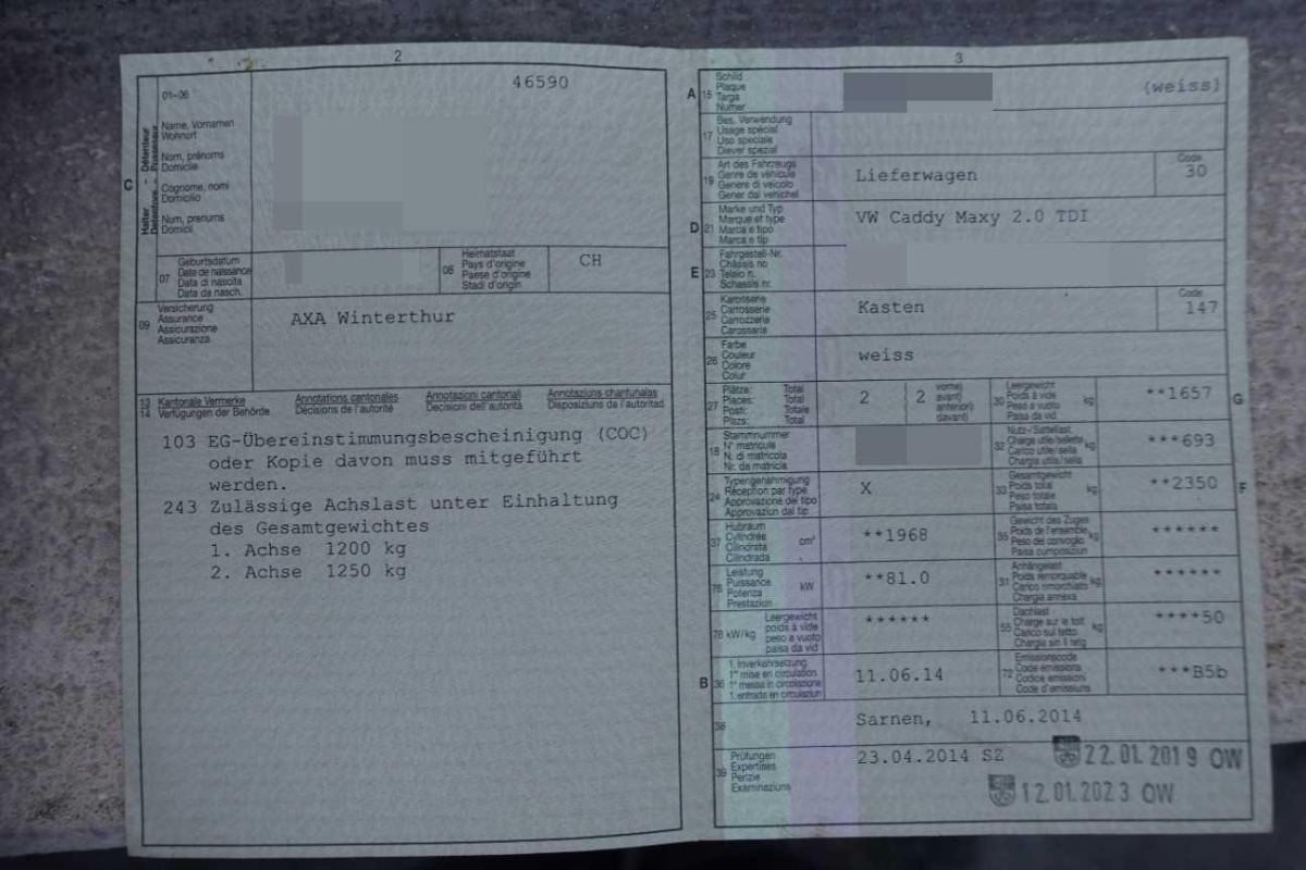 | Fahrzeugausweis | Vorhanden |