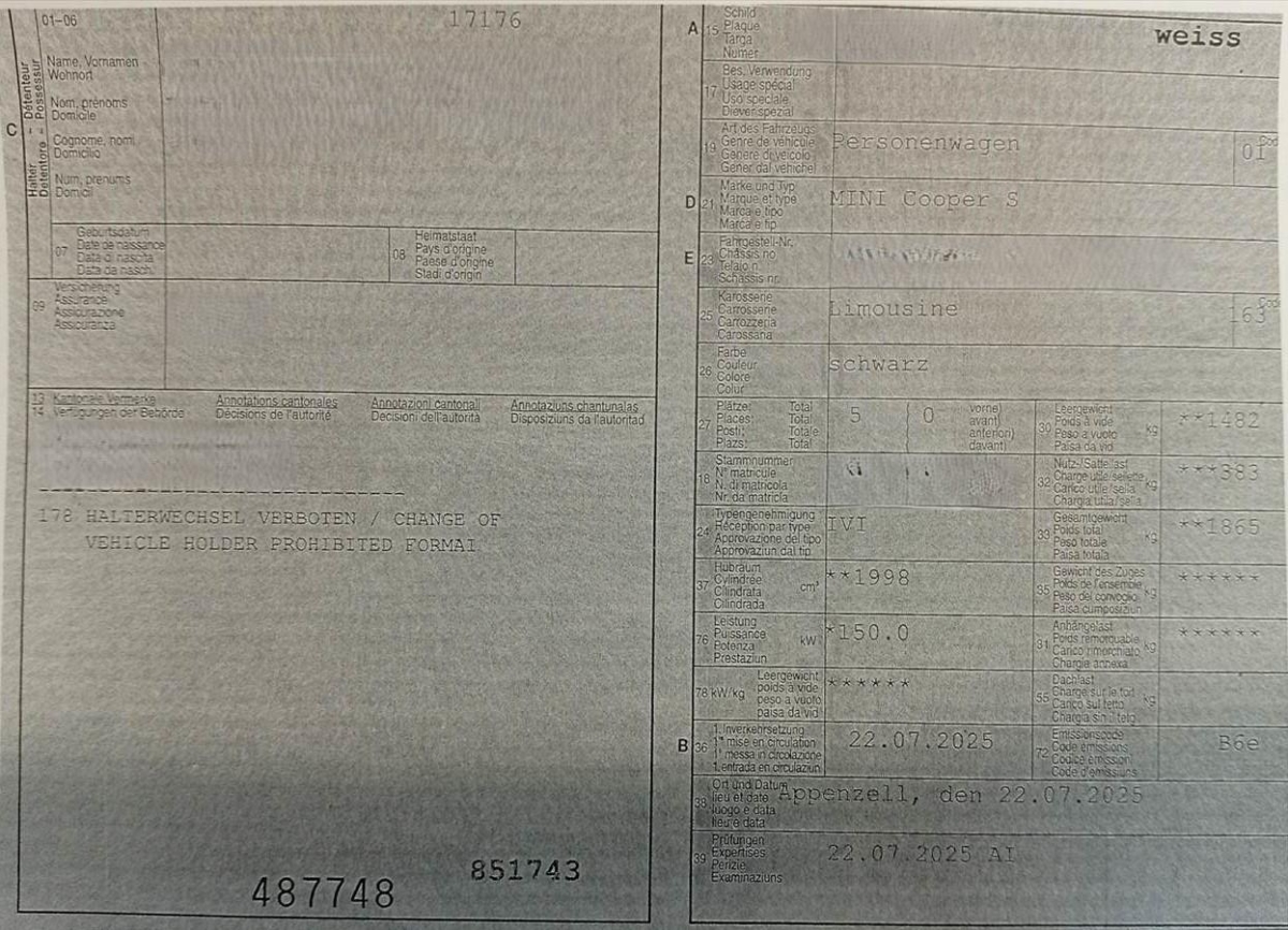 | Fahrzeugausweis | Vorhanden |