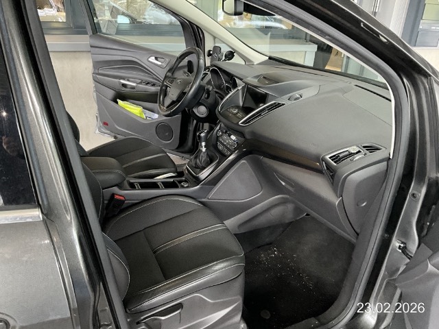3 Einzelsitze einzeln ausbaubar, 3 Kopfstützen hinten, 3-Punkt-Sicherheitsgurte auf allen Plätzen, ABS und TCS, Airbag: Fahrer und Beifahrer, Airbag: Seitenairbag für Fahrer und Beifahrer, Assist: Bremsassistent (BAS), Assist: Tempomat mit Geschwindigkeitsbegrenzer, Audiosystem 3 mit DAB+ (Farbdisplay mit Touchscreen, Bordcomputer, Radio/CD/MP3, SYNC 3,Bluetooth, AppLink, 2xUSB, 6LS), Aussenspiegel rechts und links elektrisch verstellbar, Beide Make up-Spiegel beleuchtet, Beleuchtetes Handschuhfach, Blinker in Aussenspiegel, Bordcomputer, Brillenablage, Cupholder vorne, Dachkonsole, Elektrische Fensterheber vorne + hinten, Elektrischer Zuheizer, Elektronisches Sicherheits- und Stabilitätsprogramm (ESP), FordPower Startfunktion, Getriebe: 6-Gang-Getriebe, Gurtstraffer vorne, Heckscheiben-Wisch-/Waschanlage mit, Heckscheibenheizung, Höhenverstellbare Gurten vorne, ISOFIX Kindersitzvorrichtung, Kartentaschen an den Rückenlehnen, Katalysator geregelt, Kindersicherung hinten, Klima: 2-Zonen-Klimaautomatik, Klima: Pollenfilter (Staubfilter), Kofferraumbeleuchtung, Kühlergrill mit Chromzierrand, LED Leseleuchten, Lackierung: Uni-Lackierung, Laderaumabdeckung, Lenkrad und Schalthebelgriff in Leder, Lenkrad: Lenkrad längs- und höhenverstellbar, Lenkrad: Radiofernbedienung, Licht: Drittes Bremslicht, Licht: Halogenscheinwerfer, Licht: LED-Tagfahrlicht, Licht: Leuchtweitenregulierung automatisch, Licht: Licht- und Regensensor, Licht: Nebelscheinwerfer, Mittelkonsole Premium, Mittelkonsole mit Ablagefach, MyKey, Räder: 4 Leichtmetallfelgen 16J mit Pneu, Räder: Reifenreparatur-Set (Tire Fit), Räder: TPMS Reifendrucküberwachungssystem, Scheibenwischer vorne mit Intervall, Seitenfenster-Zierleisten verchromt, Servolenkung, Sitze: Beifahrersitz höhenverstellbar, Sitze: Fahrersitz höhenverstellbar, Sitze: Mittelarmlehne hinten, Sitze: Rücksitzlehne geteilt abklappbar, Steckdose 12V, Steckdose im Kofferraum, Stossstangen und Aussenspiegel in Wagenfarbe, Torque Vectoring, Türgriffe aussen in Wagenfarbe, Veloursfussmatten hinten, Veloursfussmatten vorne, Wegfahrsperre elektronisch, Window-Kopfairbags vorne und hinten, Zentralverriegelung mit Fernbedienung