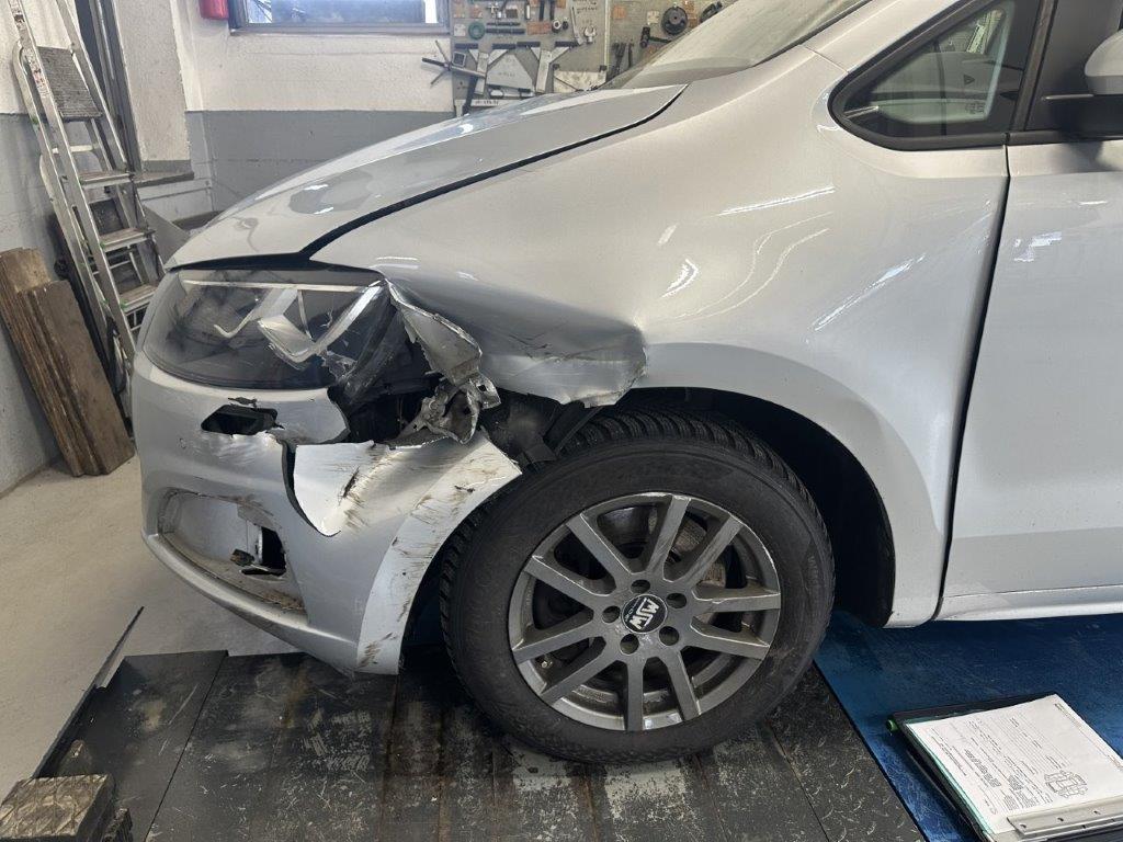 Anprall vorne links. Dabei wurden die Stossstange, der Scheinwerfer, der Kotflügel, das Radhaus, der Frontrahmen, die Felge, die A-Säule und diverse Bauteile im Anprallbereich beschädigt.