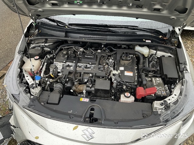 Garantie: Suzuki 12 Jahre Garantie gegen Durchrostung, Airbag: Knie-Airbag für Fahrer, Airbag: Kopfairbags vorne und hinten, Assist: eCall, Start-/Stopp-Automatik, Assist: Berganfahrhilfe, Sitze: Vordersitze umklappbar, Lenkrad: Lederlenkrad beheizt, Servolenkung, Elektrische Fensterheber vorne + hinten, Dachreling, Assist: Bremsassistent (BAS), Assist: Einparkhilfe SIPA, Heckspoiler, Polster: Stoff-Ausstattung, Steckdose 12V, Scheibenwaschdüsen beheizt, Airbag: Airbag Beifahrer deaktivierbar, Keyless Start (schlüsselloses Einsteigen und Starten), Sonnenblenden vorne mit Schminkspiegel, Räder: Leichtmetallfelgen 16J 205/55R16, Innenspiegel automatisch abblendbar, Assist: Verkehrszeichenerkennung, Media: Touchscreen-Multimediasystem mit Smartphone-Anbindung, Bluetooth und DAB+, ABS, EBD elektronische Bremskraftverteilung, Airbag: Airbag Fahrer und Beifahrer, Drehzahlmesser, Klima: Pollenfilter (Staubfilter), 3-Punkt-Sicherheitsgurte auf allen Plätzen, Bodenteppiche, Aussenspiegel rechts und links beheizt, elektrisch verstell- / und einklappbar, Privacy Glass, Garantie: Suzuki 3 Jahre Werks- und Mobilitätsgarantie (max. 100000 km) - sowie weitere 2 Jahre Zusatzgarantie inkl. Assistance als Option, Lenkrad höhenverstellbar, Nebelschlussleuchte, Assist: Rückfahrkamera, Assist: Elektrische Parkbremse, Media: 6 Lautsprecher, Lenkrad längsverstellbar, ISOFIX Kindersitzvorrichtung, Licht: Fernlicht-Assistent, Heckscheiben-Wisch-/Waschanlage, Regensensor für Scheibenwischer vorne, Assist: Notbremssystem mit Kollisionswarner, Licht: Lichtautomatik, Licht: BI-LED Abblend- und Fernlicht, Räder: Reifendruck-Kontrollanzeige, Klima: 2-Zonen-Klimaautomatik, Gurtstraffer und Gurtkraftbegrenzer vorne und hinten, Sicherheitsgurte vorne höhenverstellbar, Kopfstützen hinten, Mittelarmlehne vorne, Kopfstützen vorne höhenverstellbar, Assist: Adaptiver Tempomat, Media: USB-Anschluss, Türgriffe aussen in Wagenfarbe, Media: Kabellose Ladestation für mobile Geräte (Qi), Assist: Spurleitassistent, Licht: Drittes Bremslicht, Multifunktionsanzeige, Getriebe: E-CVT (Automatik), Licht: Nebelscheinwerfer, Sitze: Vordersitze heizbar, Licht: LED-Tagfahrlicht, Sitze: Rücksitzlehne separat umklappbar (60/40), Sitze: Vordersitze höhenverstellbar, Räder: Reifenreparatur-Set (Tire Fit), Dunkel getönte Scheiben, Assist: Aktiver Spurhalteassistent, Lederschaltknauf, Elektronisches Stabilitäts- und Traktionskontrolle (ESP / TCS), Zentralverriegelung mit Fernbedienung, Wegfahrsperre elektronisch, Assist: Spurwechselassistent, Lenkrad: Bedientasten am Lenkrad für Audio und Telefon, Katalysator geregelt, Mittelarmlehne hinten, Airbag: Seitenairbag für Fahrer und Beifahrer, Assist: Querverkehrsassistent hinten, Assist: Park Distance Control vorne und hinten, akustisch, Heckscheibenheizung