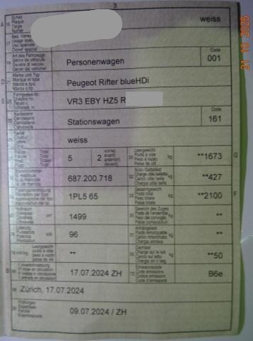 | VIN | VF3EBYHZ5RJ****** | Reifenprofil in %: | |
