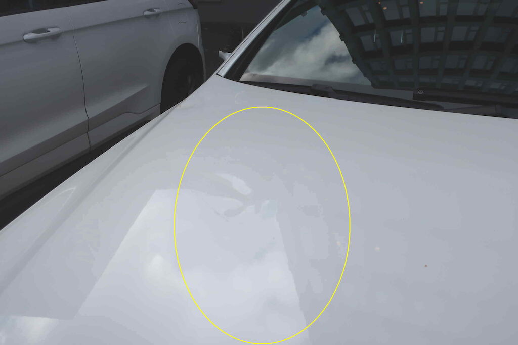 Kotflügel links, Fahrertüre, Spiegel Fahrertüre, A-Säule links, Haube, Spiegel rechts und Beifahrertüre, Seitenwand rechts |