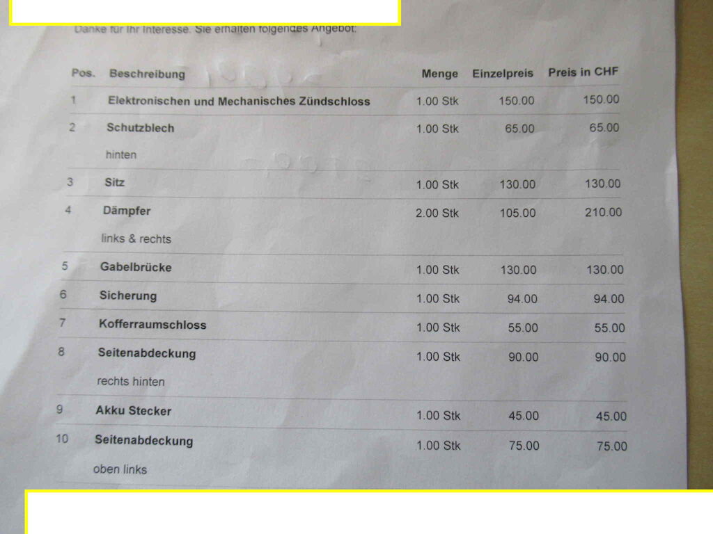 | Diebstahlschaden. Next NX1 mit 7441 Km aus dem Jahr 03.2024 Neupreis CHF 3400.- Batterie I.O. Zündschloss wurde aufgebrochen und ist Stellung ON blockiert. Roller fahrbar, Lenkanschlag R eingeschränkt. KV in Bilder ersichtlich. | |