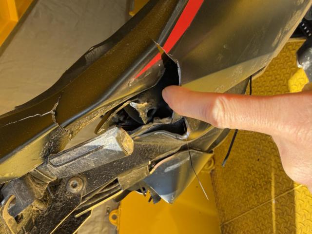 Wichtige HinweiseZustandFahrzeug muss transportiert werden [Höhe und Breite beachten]. Fahrzeug ist NICHT fahrbar. Fahrzeug ist rollbar. Fahrzeug lag auf der Seite. Bereifung Fahrzeug wird mit Sommerräder abgegeben. Sonstiges Fahrzeugdokumente vorhanden. Schlüssel Nur ein Schlüssel vorhanden. BeschädigungenLinks Linke Seite beschädigt. Rechts Rechte Seite beschädigt. Heck Heck eingedrückt. Motor Motorstörung: Warnleuchte aktiv Achse Risiko Vorderachse. Risiko Hinterachse. Beschädigungen Risiko Lenkung. Elektrik Risiko Steuergeräte. Risiko Scheinwerfer. Sonstige Schäden Div.Carrosserie Teile sind leicht beschädigt. Weitere Beschädigungen Zubehör: Bremshebel,Fussrasten, Leuchten, Frontcover / Scheibe, Rückspiegel. Beschädigungen siehe Fotos; Rahmen verkratzt, verbogen / alle Cover verkratz, teileweise gerissen, Motor- / Getriebegehäuse beschädigt / Auspuffblende beschädigt, Felge hinten beschädigt, Risiko Gabel, Motor läuft [Risiko], Hinterradschwinge beschädigt etc. Ausstattung |