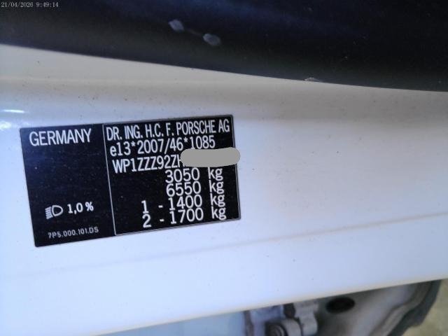 Wichtige HinweiseZustandFahrzeug hat sich mehrmals überschlagen. Schlüssel Nur ein Schlüssel vorhanden. BeschädigungenLinks Linke Seite beschädigt. Rechts Rechte Seite beschädigt. Front Fahrzeugvorbau verschoben. Heck Kofferboden eingedrückt. Längsträger hinten rechts gestaucht / abgeknickt. Achse Vorderachse ist beschädigt. Hinterachse ist beschädigt. Motoraufhängung/Aggregateträger ist beschädigt. Innenraum Beide Airbags sind ausgelöst. Kopfairbag links ausgelöst. Armaturenbrett ist beschädigt. Gurtstraffer ausgelöst. Dachhimmel gerissen. Beschädigungen Glas Windschutzscheibe ist gerissen. Dach Dach eingedrückt. Unterboden Bodengruppe verzogen/beschädigt. AusstattungSerienaustattung Airbag Fahrer und Beifahrerseite Elektrische Fensterheber vorne + hinten ABS Antiblockiersystem Servotronic Nebelscheinwerfer Zentralverriegelung mit Fernbedienung Sprachbedienungssystem Scheibenwischer mit Regensensor Reifendruck-Kontrollsystem RDK Aussenspiegel elektrisch verstellbar/ heizbar und anklappbar Alarmanlage mit Innenraumüberwachung Bi-Xenon-Scheinwerfer Sitzbezüge in Teilleder Einstiegsleisten Edelstahl Zwei Zonen-Klimaautomatik ESP/ ASR/ MSR Vorhangairbags Seitenairbags vorne Handy Vorbereitung Tempostat Multifunktions-Lederlenkrad 3-Speichen Active Suspension Management PASM Leichtmetallräder 18" Cayenne S Komfortsitze elektrisch vorn Rücksitze geteilt umklappbar 40/20/40 Heckklappe automatisches öffnen/ schliessen Anschluss USB/ AUX und iPod Universelle Schnittstelle Porsche Communication Management PCM LED Tagfahrlicht Keine Gewähr auf die Angaben der Serienausstattungen SonderausstattungLuftfederung + Niveauregulierung Heizbare Frontscheibe Garagen-Toröffner HOME LINK Pack Exterieur schwarz Pack Sport Chrono Abstandsregeltempomat Anhängerkupplung elektrisch ausklappbar Multifunktionslenkrad Leder 3-Speichen/ Lenkradheizung Spurwechselassistent LED Rückleuchten abgedunkelt DAB+ Digital Audio Broadcast Tempolimitanzeige Park-Distanz-Sensor v+h/ Rückfahrkamera/ Surround View On-Board Lader |