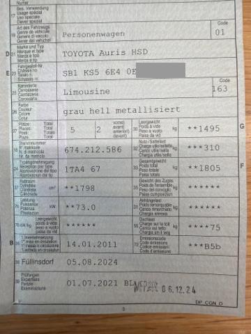 Wichtige HinweiseZustandFahrzeug muss transportiert werden [Höhe und Breite beachten]. Fahrzeug ist NICHT fahrbar. Fahrzeug ist NICHT rollbar. Bereifung Fahrzeug wird mit Winterräder abgegeben. Sonstiges Fahrzeugdokumente vorhanden. Schlüssel Nur ein Schlüssel vorhanden. Hersteller- und Gewährleistungsbedingungen Die Fahrzeuggarantie oder Gewährleistung wird möglicherweise nicht vom Hersteller fortgeführt Hochvoltfahrzeug Zum Zeitpunkt der Prüfung ging von der Batterie keine Brandgefahr aus. Die geforderten Sicherheitsbestimmungen sind zwingend vom Käufer einzuhalten. BeschädigungenLinks Linke Seite beschädigt. Rechts Rechte Seite beschädigt. Front Front rechts eingedrückt. Radhaus vorne rechts eingedrückt / gestaucht. Beschädigungen Heck Heck links eingedrückt. Achse Aufhängungsteile vorne rechts beschädigt. Risiko Hinterachse. Risiko Lenkung. Elektrik Kabelstränge verbrannt, beschädigt, abgerissen. Innenraum Innenraum ungepflegt. Sonstige Schäden Div.Carrosserie Teile sind leicht beschädigt. Hagel Hagelschaden leicht. Hagelschaden mittel. AusstattungSerienaustattung Klimaautomat Airbag Fahrer und Beifahrerseite Elektronische Wegfahrsperre Elektrische Fensterheber vorne + hinten Seitenairbag Fahrer und Beifahrerseite Nebelscheinwerfer Zentralverriegelung mit Fernbedienung Höhenverstellbarer Fahrersitz manuell Lederlenkrad Mittelarmlehne vorne Lenkrad verstellbar Kopfairbag vorne und hinten Deaktivierung Beifahrerairbag Aussenspiegel elektrisch verstellbar/ heizbar und anklappbar Audiofernbedienung am Lenkrad Stabilitätskontrolle VSC + Traktionskontrolle TRC Leichtmetallräder 15" Servolenkung geschwindigkeitsabhängig Knieairbag Fahrer Isofix-Kindersitzbefestigung hinten Rücksitzlehnen getrennt abklappbar 60:40 Radio/ CD Anschluss USB und AUX Reifen-Reparatur Set ABS und EBD Elektr. Bremskraftverteilung inkl. BA Keine Gewähr auf die Angaben der Serienausstattungen SonderausstattungMetallic- oder Mica Lackierung |
