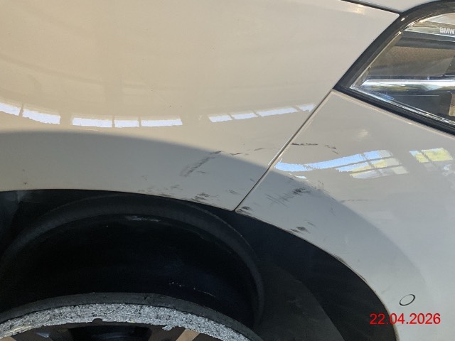 | Schadensbeschreibung | Beschreibung der Schäden: Fahrwerk vorne rechts: Felge vorne und hinten verbeult, Fahrwerk evtl. verbeult Stosstange, Kotflügel vorne rechts verkratzt, Motorlampe brennt: Raddrehzahlsensor rechts |