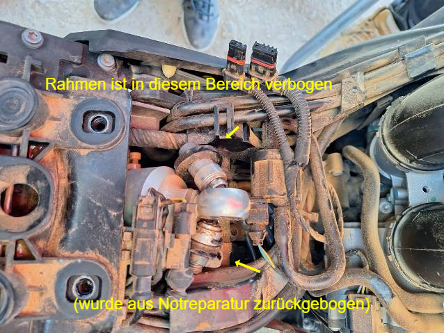 Beschreibung der Schäden: Der Rahmen, der Dämpfer, der Sturzbügel sind deformiert.