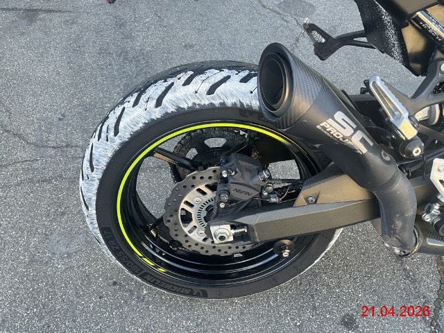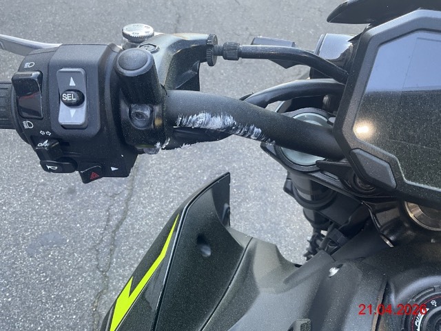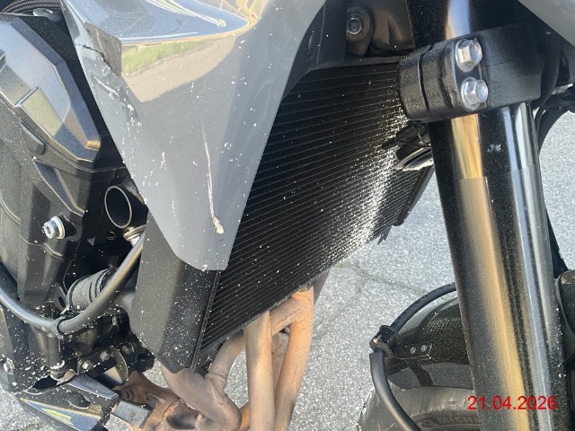 Schadensbeschreibung Seite rechts: Auspuff, Lenker, Kupplungsdeckel, Motordeckel… zerkratzt, Motorrad voller Farbe - AUFZÄHLUNG NICHT ABSCHLIESSEND / Vorbestandene Schäden: Gebrauchsspuren