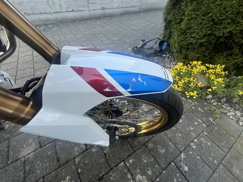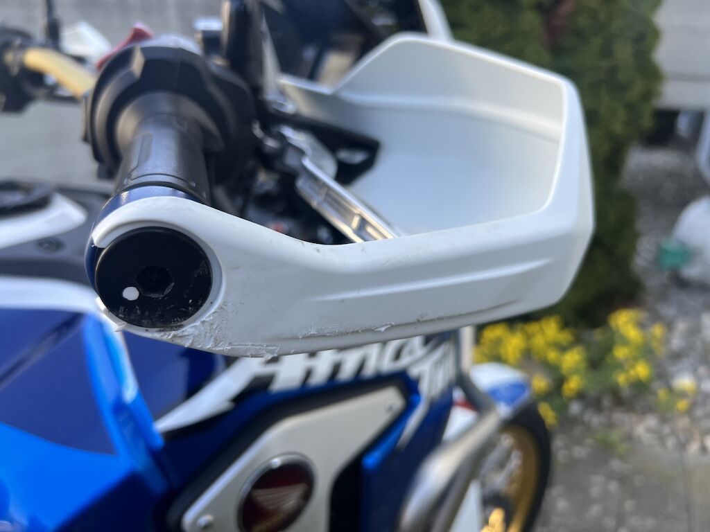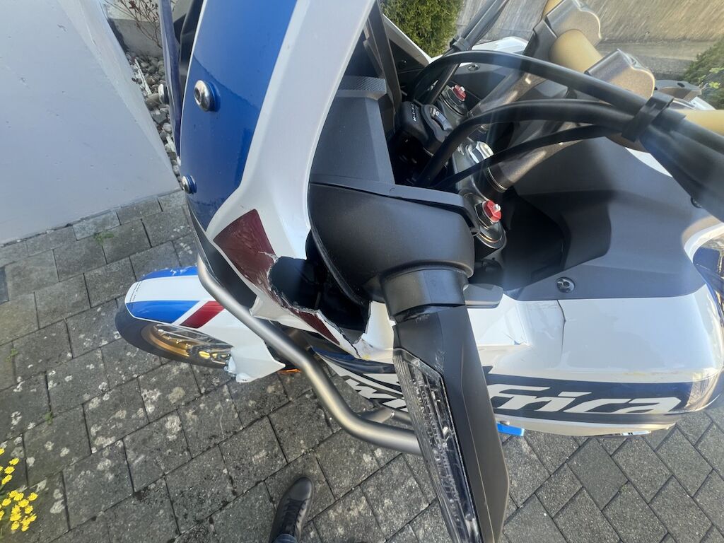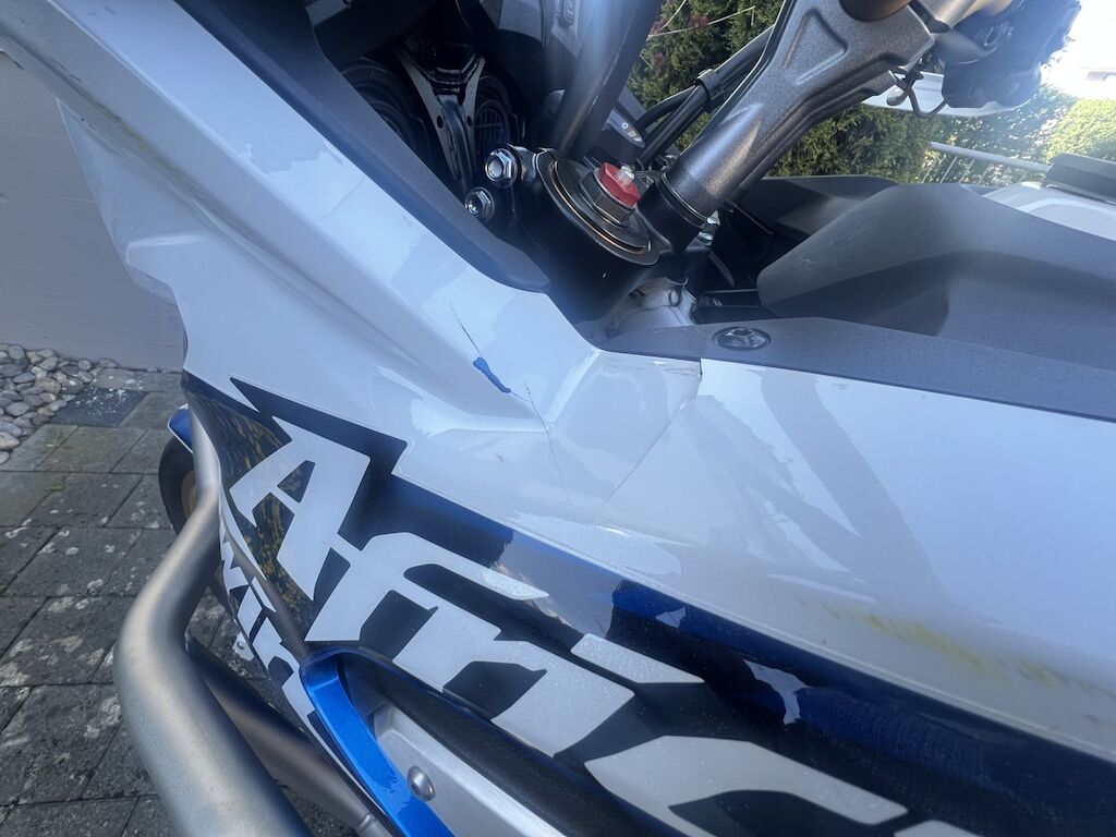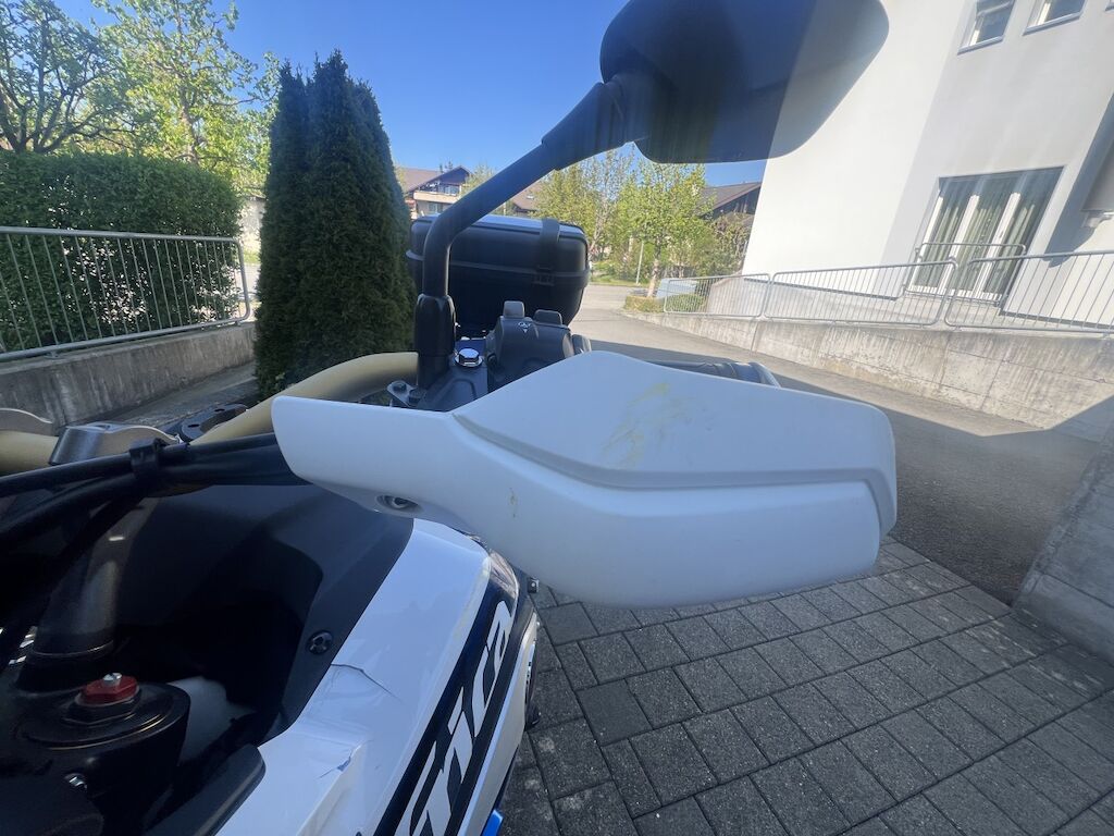 | Opis uszkodzen: | Rechte Seite: Gabelholm, Schutzlblech, Handschutz, Fussraster, Auspuffbelnde, Koffer, etc. verkratzt.