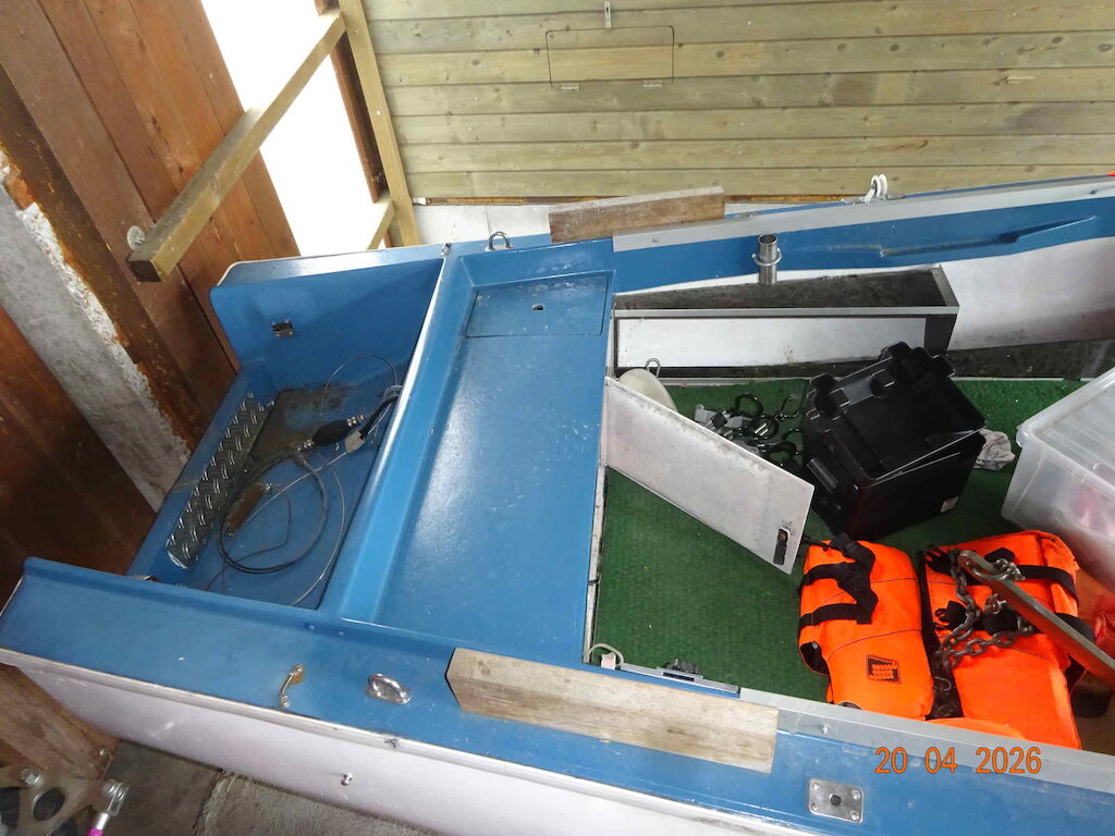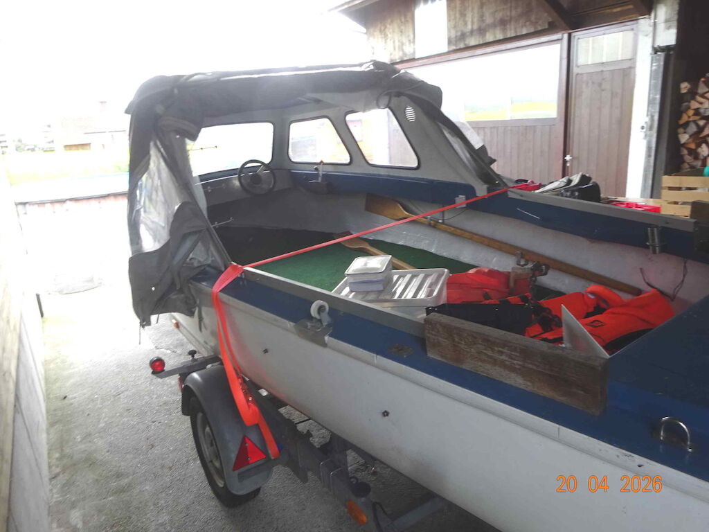 | GFK Fischerboot Kielholz, Unterwasserbereich diverse Beschädigungen vorhanden. Risiko auf Merhschäden nach Zerlegung. Kielholz ist morsch. Boot mit diversen Gebrauchsspuren. Verkauf inkl. Motor und klappbare Abdeckung Keine Persenning vorhanden. Ohne Trailer Boot muss für Abholung mit Kran von Trailer gehoben werden. | |