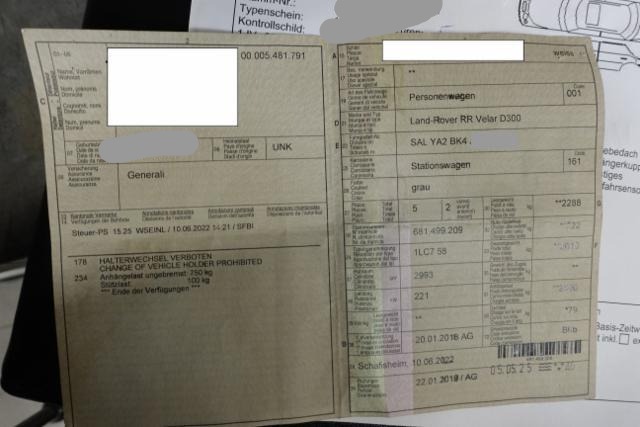 Wichtige HinweiseZustandFahrzeug ist fahrbar. BeschädigungenFront Front eingedrückt. Weitere Beschädigungen siehe Fotos AusstattungSerienaustattung Airbag Fahrer und Beifahrerseite TCS Elektronische Traktionskontrolle ABS Antiblockiersystem Lenksäule elektrisch einstellbar Seitenairbag Fahrer und Beifahrerseite Innenspiegel automatisch abblendbar Alarmanlage Regensensor Aluminiumdekor EBD Elektronischer Bremskraftverteiler CBC Kurvenbremskontrolle Isofix-Kindersitzbefestigung Luftfederung + automatische Niveauregulierung Lederausstattung erweitert Windowbags vorne + hinten DSC Dynamische Stabilitäts-Control Servolenkung elektrisch Zwei Zonen-Klimaautomatik Rückfahrkamera Knieairbag Fahrer Dieselpartikelfilter Bluetooth-System Uni-Lackierung Adaptives variables Fahrwerk Berganfahrhilfe Elektronische Parkbremse HDC Hill Descent Control/ Bergabfahrkontrolle Dachhimmel schwarz/ Stoff Reifendruck-Sensoren TPMS Rücksitzbank im Verhältnis 40/20/40 Reifen-Reparatur Set Stop + Start System Pedale in Edelstahl Virtuelle Instrumententafel/ TFT-Bildschirm 12.3" Aussenspiegel el.verstell-heiz-anklappbar/abblendbar Spurhalteassistent LDW Details siehe gültige Preisliste des Importeurs Ledersitze perforiert Keine Gewähr auf die Angaben der Serienausstattungen Meridian Premium Sound System Leichtmetallfelgen 21" 10-Speichen Kollisionswarnsystem Einpark-Assistent Terrain Response Lenkrad-Wippenschaltung in Chromoptik Adaptive Geschwindigkeitsregelung ACC mit Stauassistent Toter-Winkel-Assistent Heckklappe elektrisch mit Freihandfunktion Notbrems-Assistent InControl Apps Free Service 4 Jahre/ 100'000 km InControl Remote Grössere Bremsscheiben vorne Verkehrszeichenerkennung & Geschwindigkeitsbegrenzer Matrix LED-Scheinwerfer Vordersitze 18-fach elektr. verstellbar Pro Service WiFi Pack Anschluss Pack Luxus Pack R-Dynamic Exterieur Navigation Pro Müdigkeitserkennung SonderausstattungStandheizung mit Fernbedienung Metallic-Lackierung Fussmatten Lederlenkrad beheizbar Dunkel getönte Scheiben ab B-Säule Carbon Dekor Ambientebeleuchtung Head-Up Display Panorama-Glasschiebedach elektrisch mit elektr. Storen Anhängerkupplung elektrisch ausklappbar Frontscheibe Wärmeschutzglas Surround Camera System Dach in Kontrastfarbe Digitaler Radioempfang DAB+ All Terrain Progress Control Dynamic Modus Matrix LED-Scheinwerfer inkl. Laserfernlicht Leichtmetallfelgen 22" 7-Doppelspeichen Black Armaturentafel in Chrom Lederausstattung erweitert 2 Pack On/ Off-Road Pack R-Dynamic Black Ausstattung Klimaanlage Leder-Ausstattung Leichtmetall-Felgen Navigationsgerät Rückfahrkamera Rückfahrsensoren Tempomat Xenon Metallic-Lackierung |