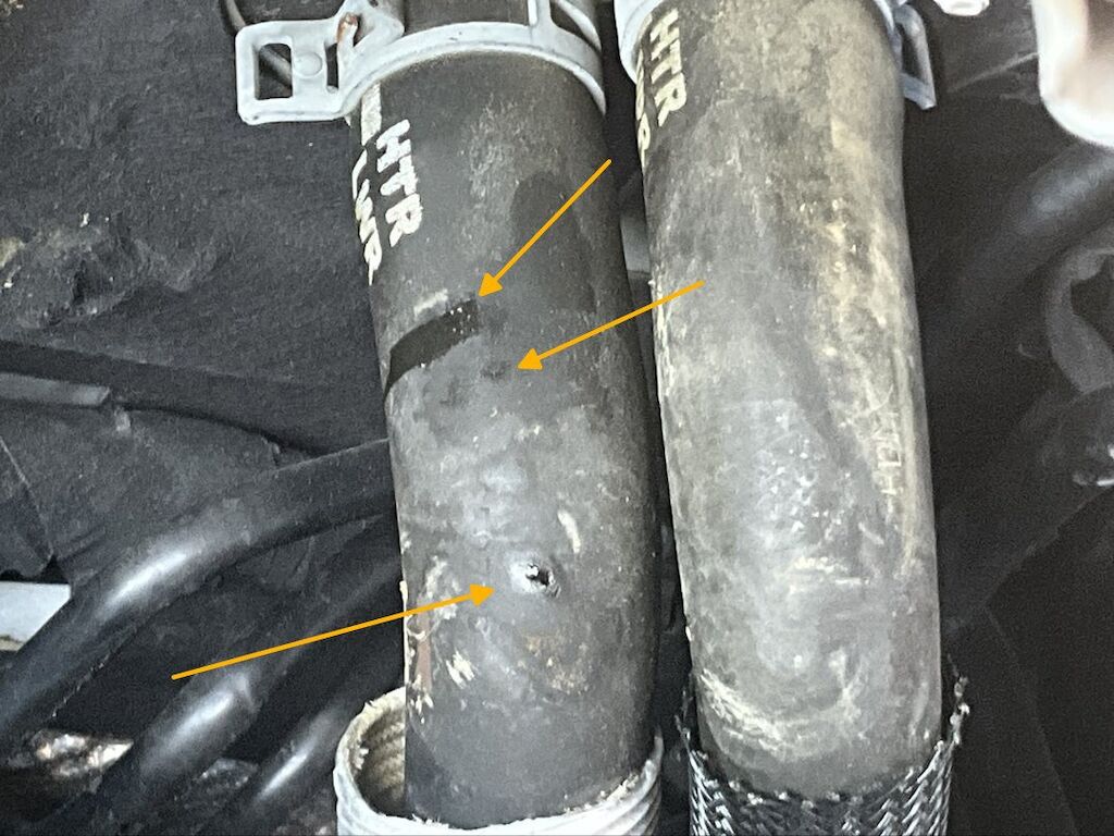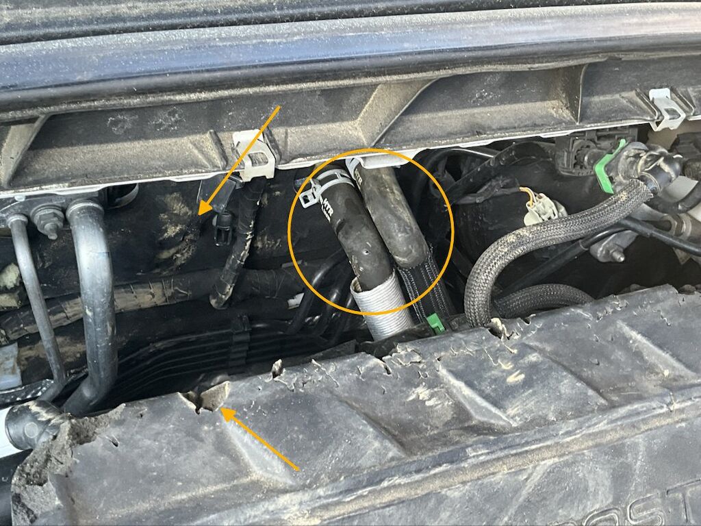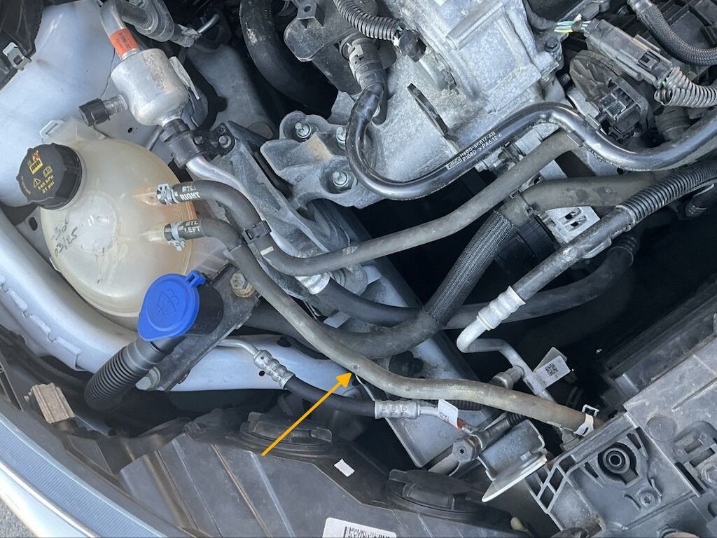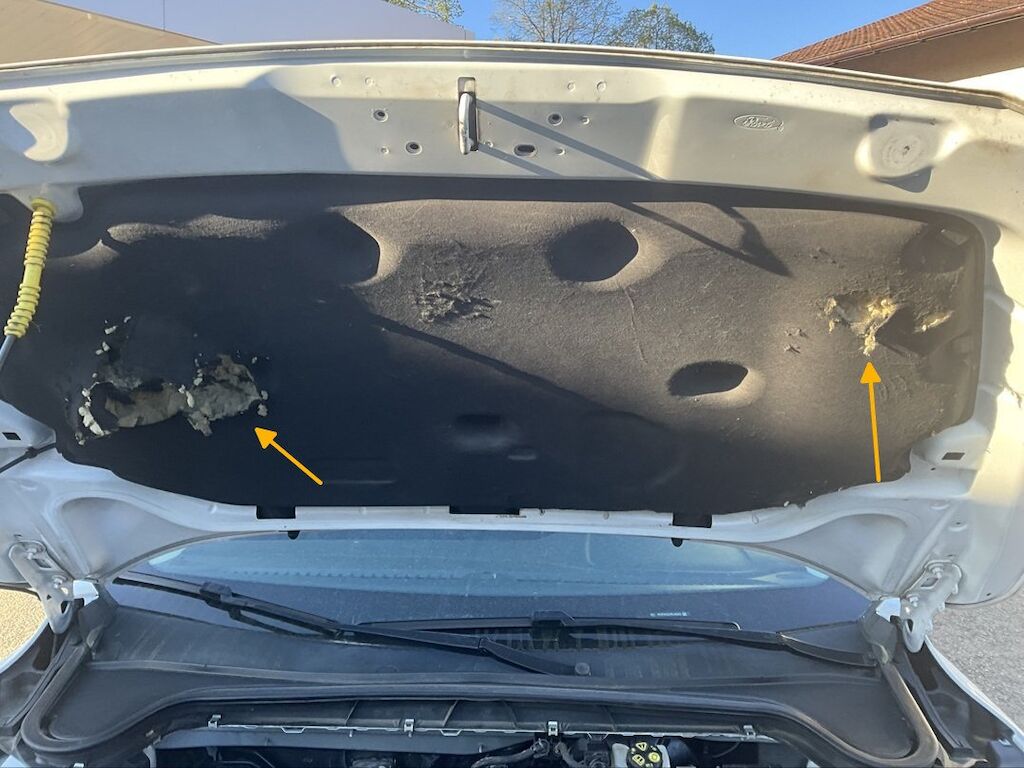 Divers tuyaux d'eau, isolation tablier moteur et isolation de capot endommagé. Moteur endommagé consécutivement. Divers autres éléments de carrosserie sont légèrement endommagés.