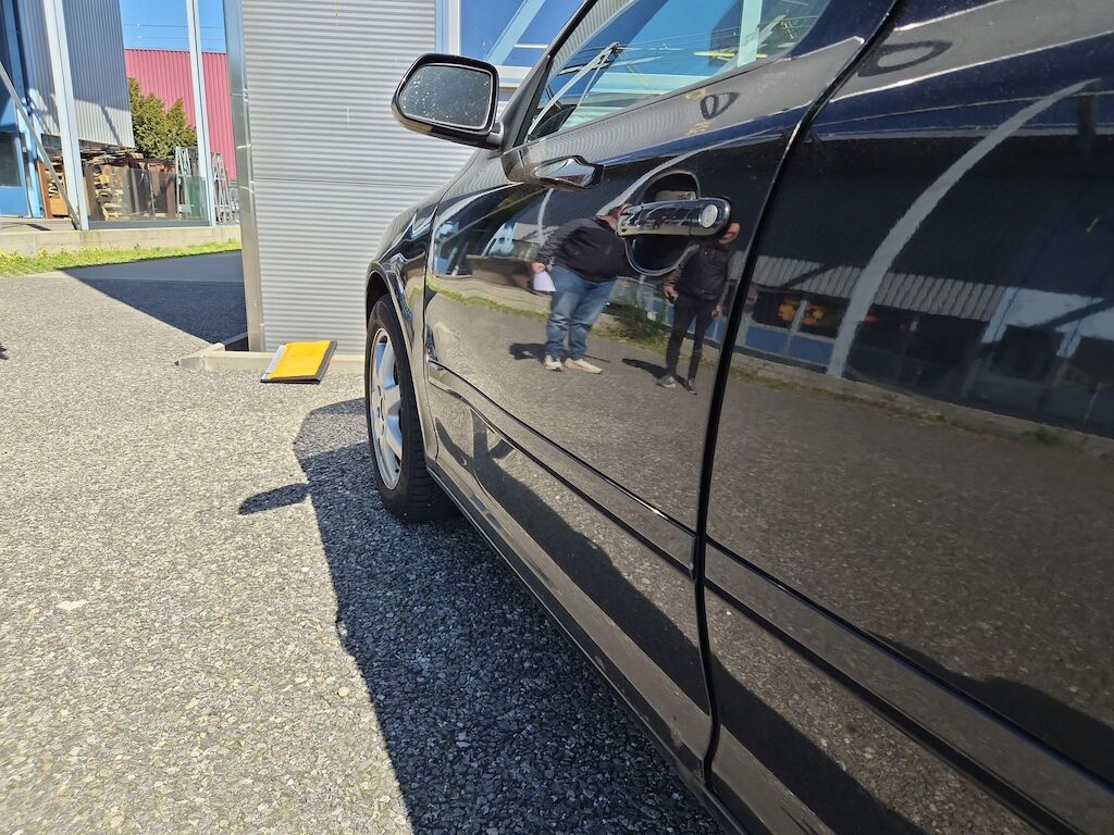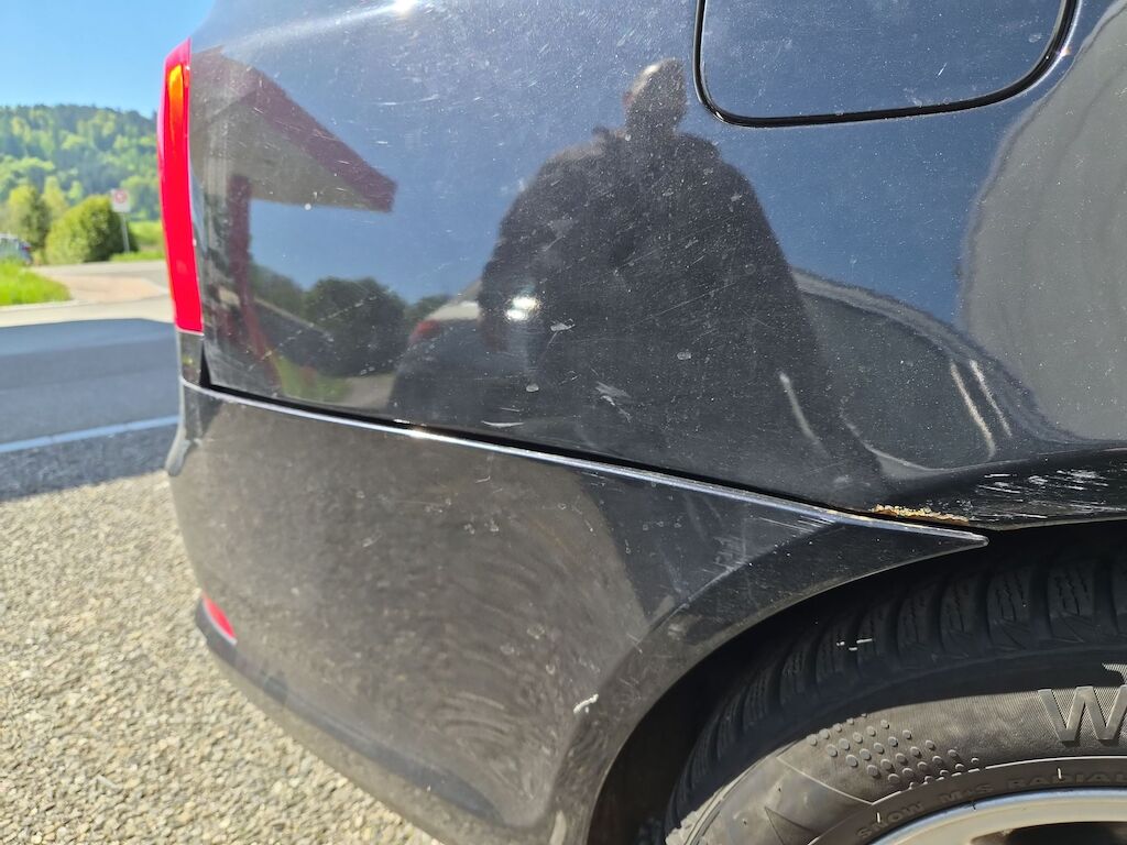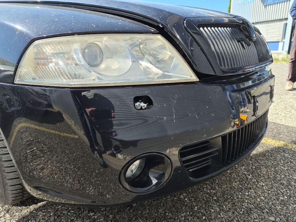 Aufprall auf Fahrzeugseite links mit Beschädigung von Türe, Kotflügel sowie diversen Anbauteilen. |