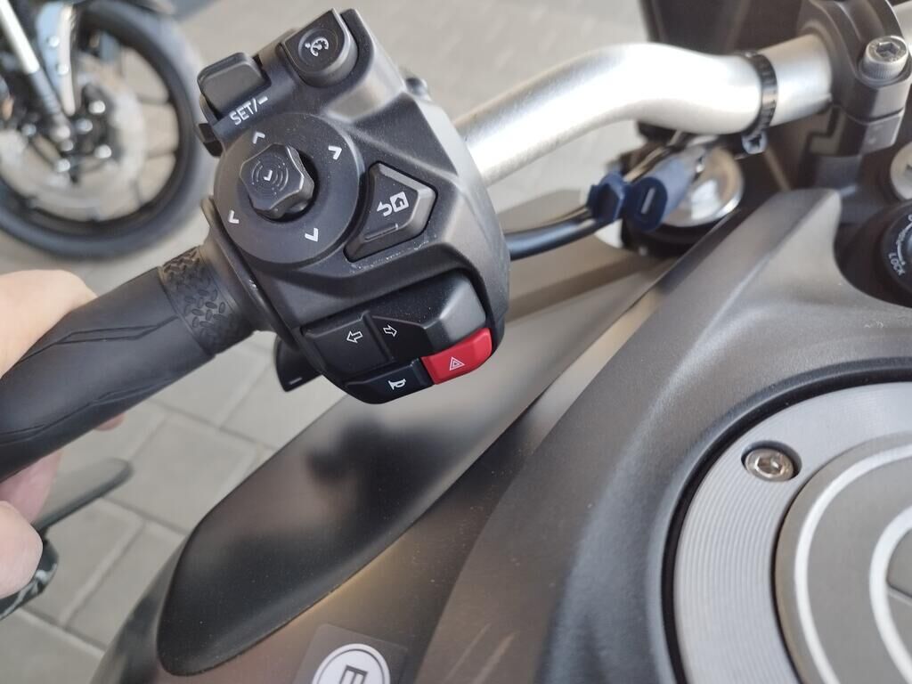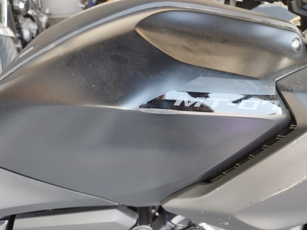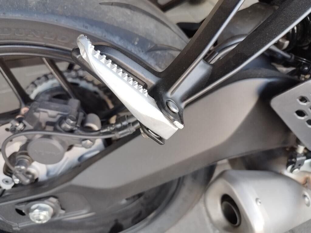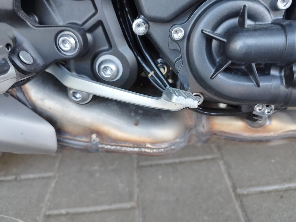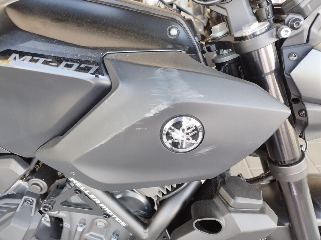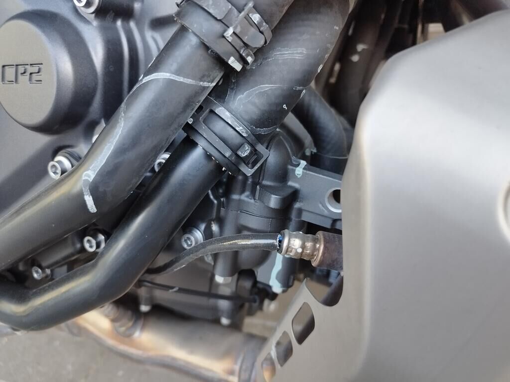Die Gabel vorne ist gestaucht, der Lenker ist verbogen, der Rahmen ist deformiert und angerissen, der Bremshebel hat Kratzspuren, der Spiegel rechts hat Kratzspuren, die Verkleidung vorne rechts hat Kratzspuren, der Tank hat Kratzspuren, Motor hat Wasserverlust, das Sturzpad rechts hat Kratzspuren, das Bremspedal hat Kratzspuren, der Fussraster vorne rechts hat Kratzspuren, der Fussraster hinten rechts hat Kratzspuren, die Auspuffverkleidung hat Kratzspuren.