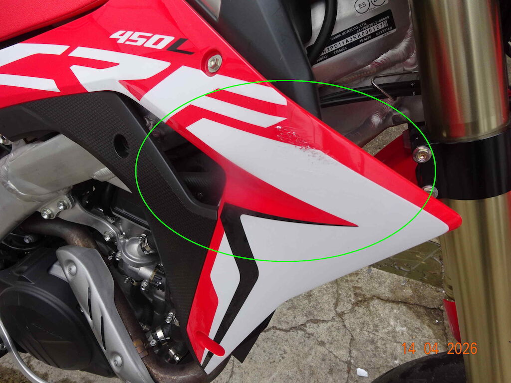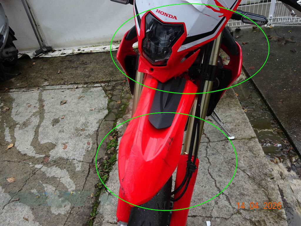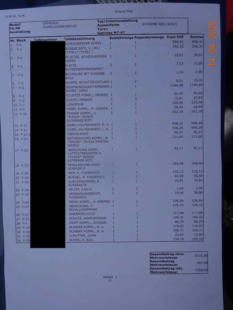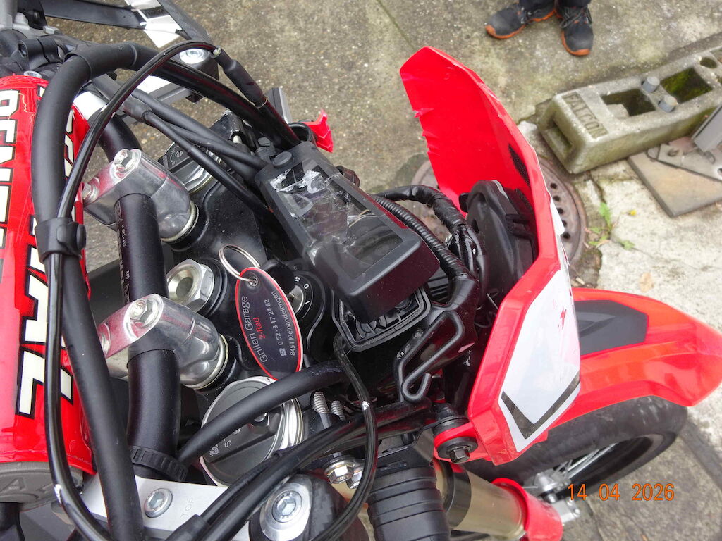 | Opis uszkodzen: | Seitenverkleidungen rechts Steckachse HA Fussraster und Bremse rechts Hitzeschild rechts Lenker und Anbauteile Frontmaske und Scheinwerfer Cockpit/Tacho Kotflügel vorne Gabelrohr vl |