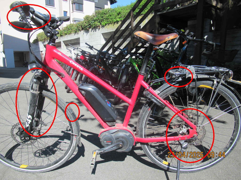 | Opis uszkodzen: | Gabel, Rahmen, Lenker, Schaltung und weitere Anbauteile |