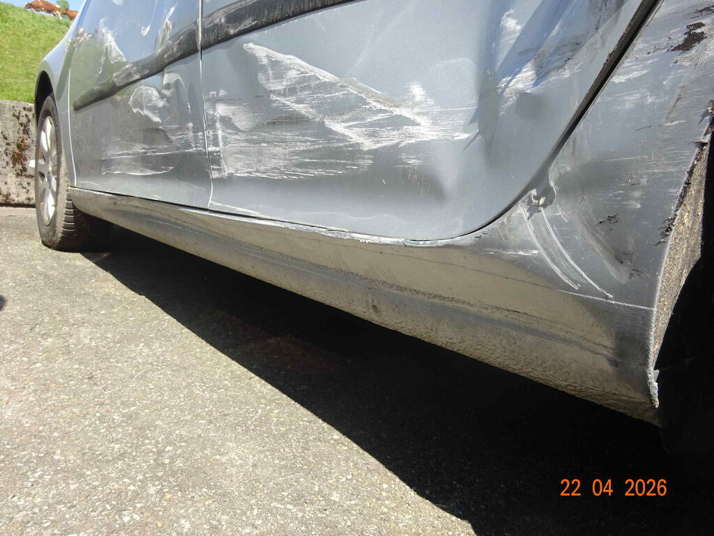 | Opis uszkodzen: | Türe VL stark deformiert, Türe HL gerissen, Seitenwand links deformiert, Schweller links Stark gestaucht. Felge HL beschädigt. |
