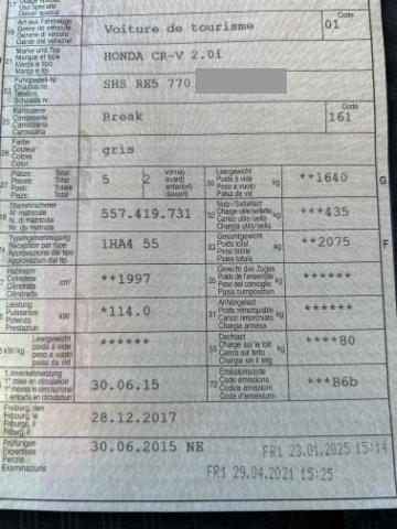 | VIN | SHSRE5770FU****** | Reifenprofil in %: | 84 |