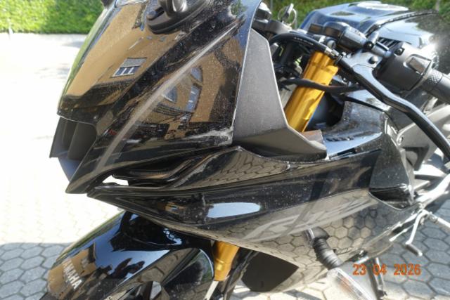 VG5RE472000******Wichtige HinweiseZustandFahrzeug muss transportiert werden [Höhe und Breite beachten]. Zweirad-Kategorie Motorrad BeschädigungenLinks Verschalung oben links verkratzt. Rechts Rechte Seite beschädigt. Verschalung unten rechts gebrochen. Verschalung hinten rechts verkratzt. Front Vorderrad beschädigt. Gabel beschädigt. Lenker verbogen. Heck Auspufftopf nur verkratzt. Verschalung hinten verkratzt. Weitere Beschädigungen Siehe beiliegende Fotodokumentation und Kostenvoranschlag. Ausstattung |