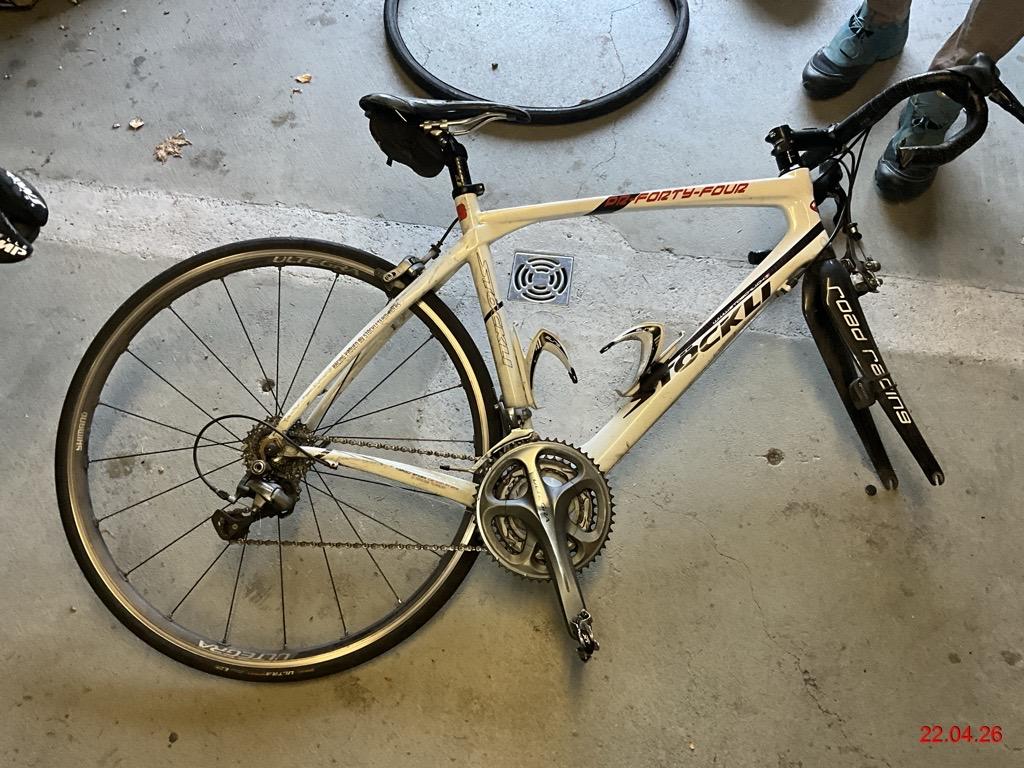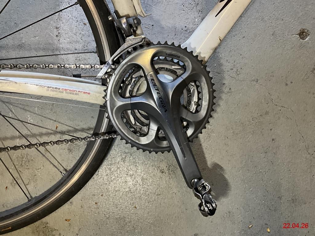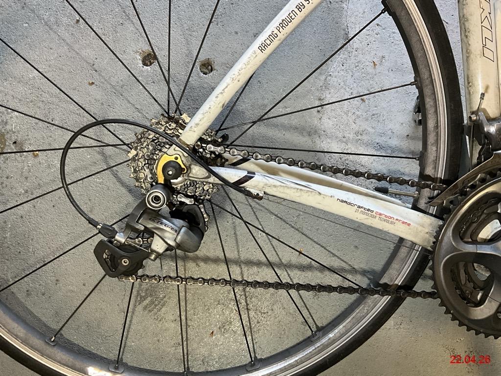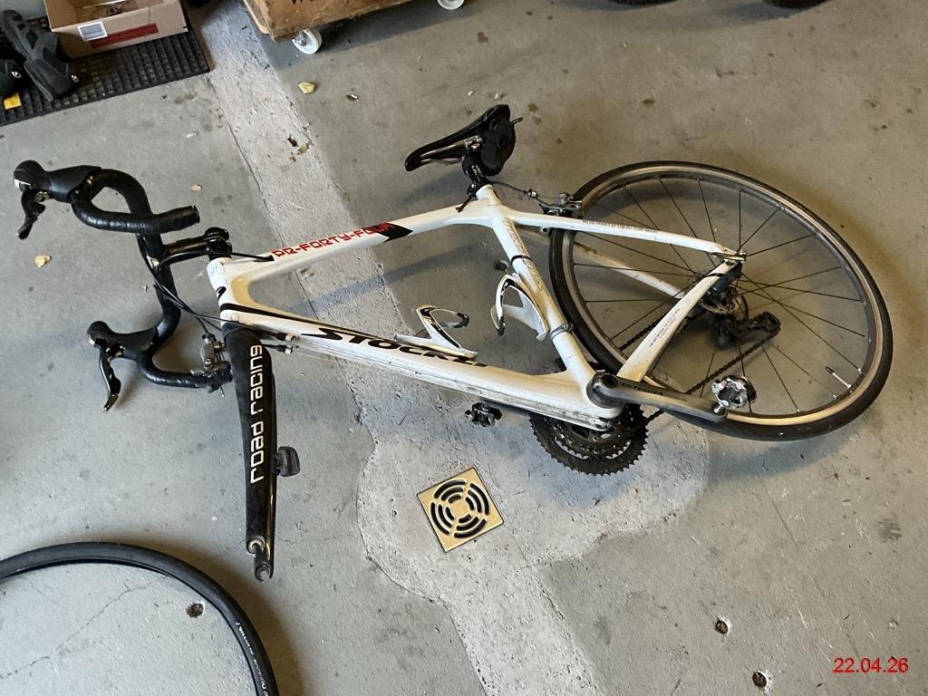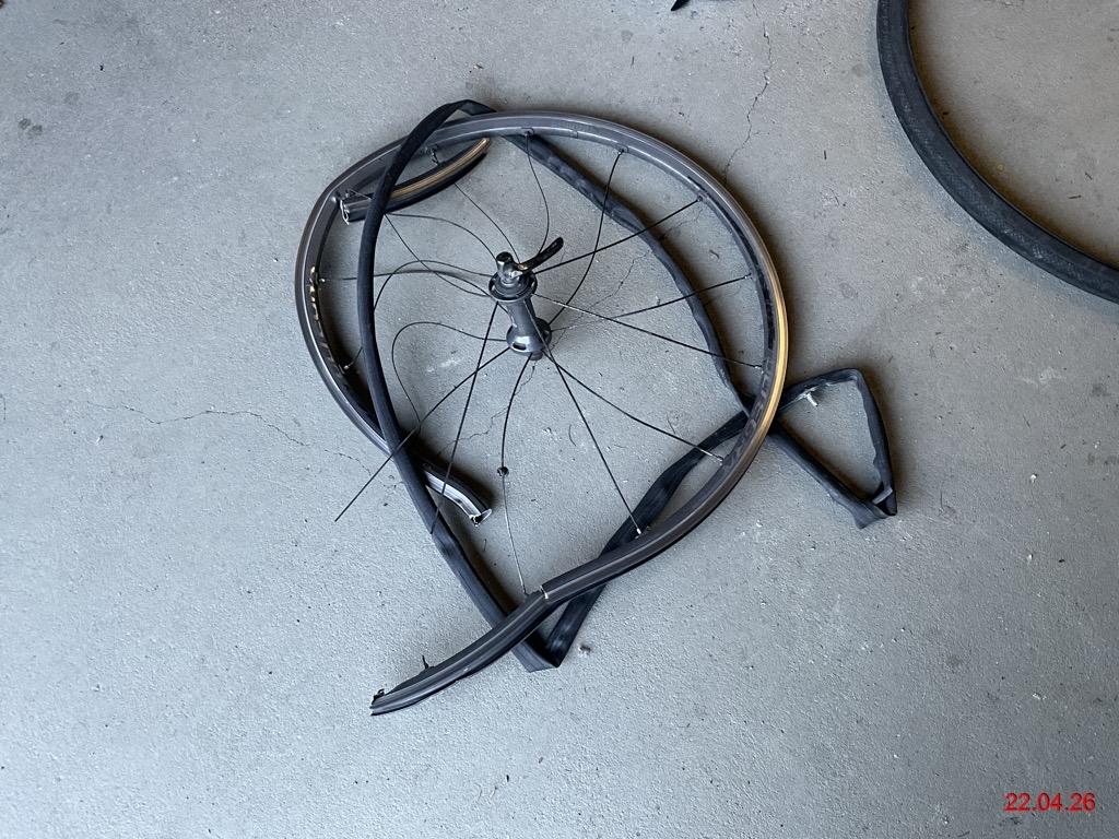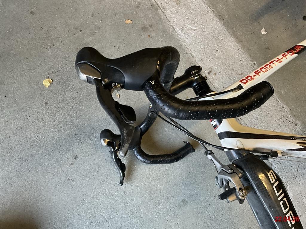 Felge vorne komplett verdrückt, Lenker und Brems/Schaltheben verscheuert, Rahmen (Carbon) möglicherweise