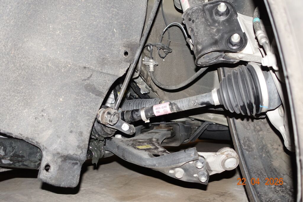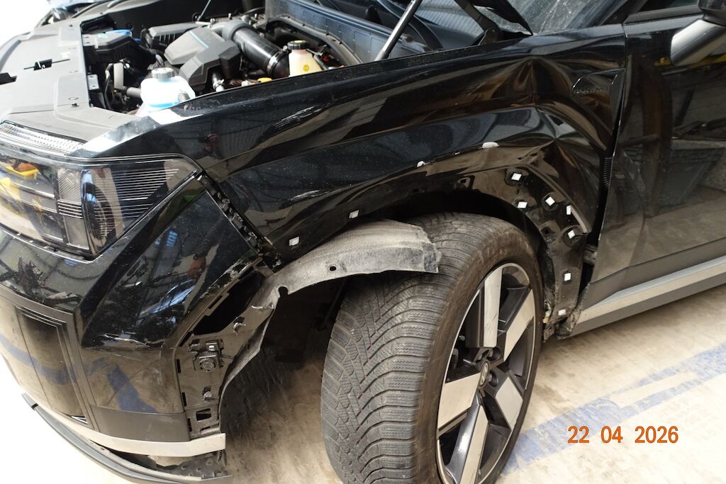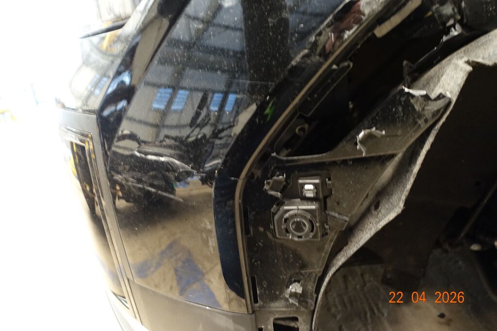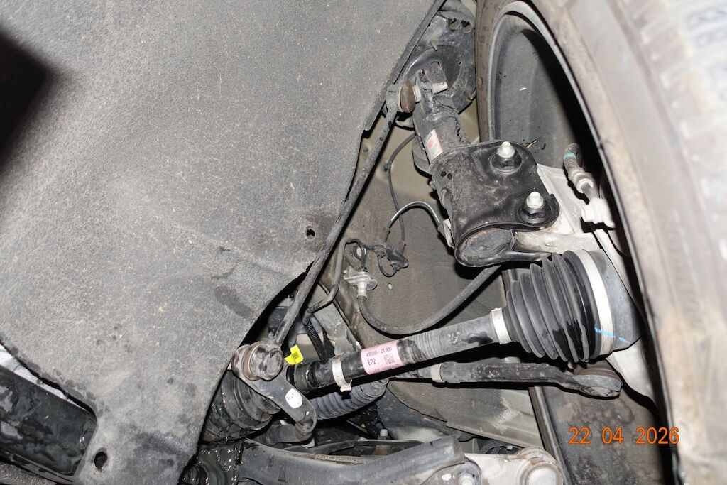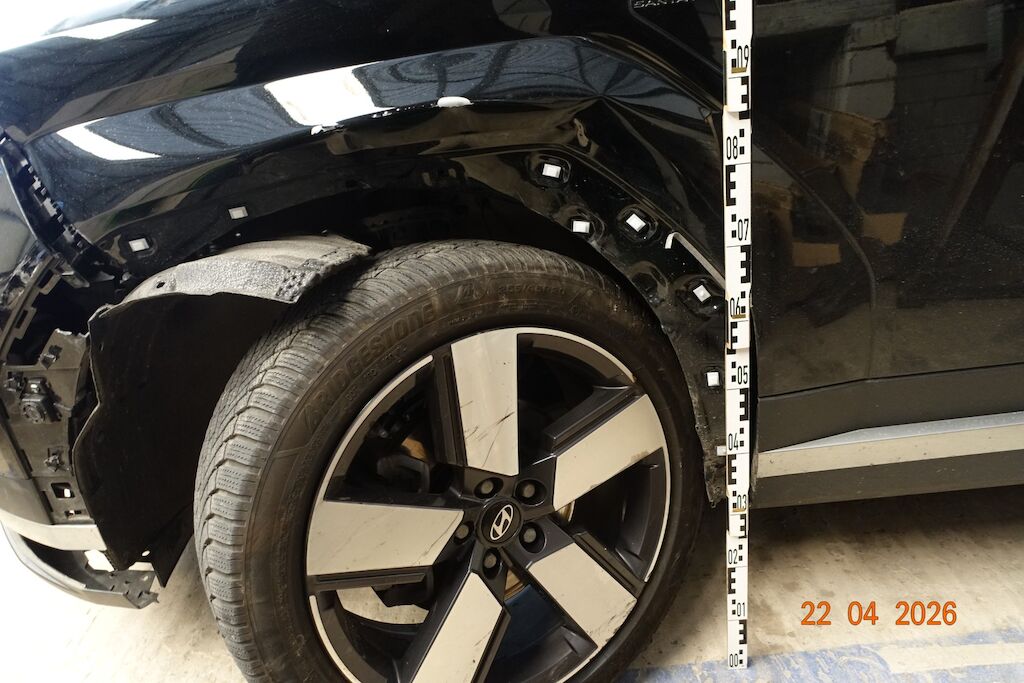 Die komplette Vorderachse VL wurde durch den Aufprall heraus gerissen. Grosses Restrisiko für das Getriebe. Die Verkleidung sowie der Kotflügel und weitere Bauteile sind beschädigt.