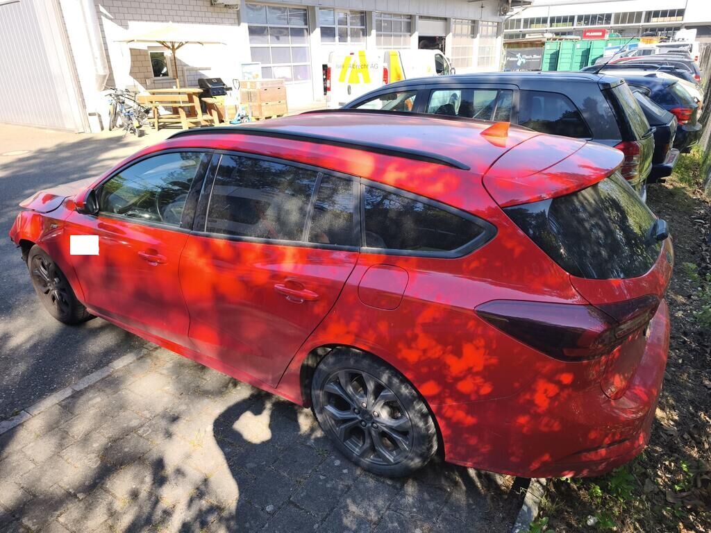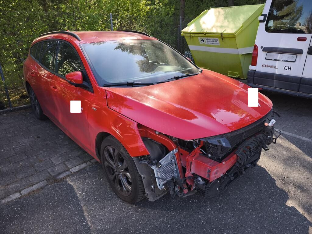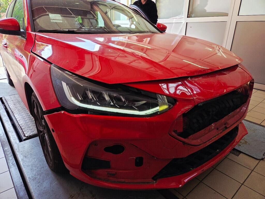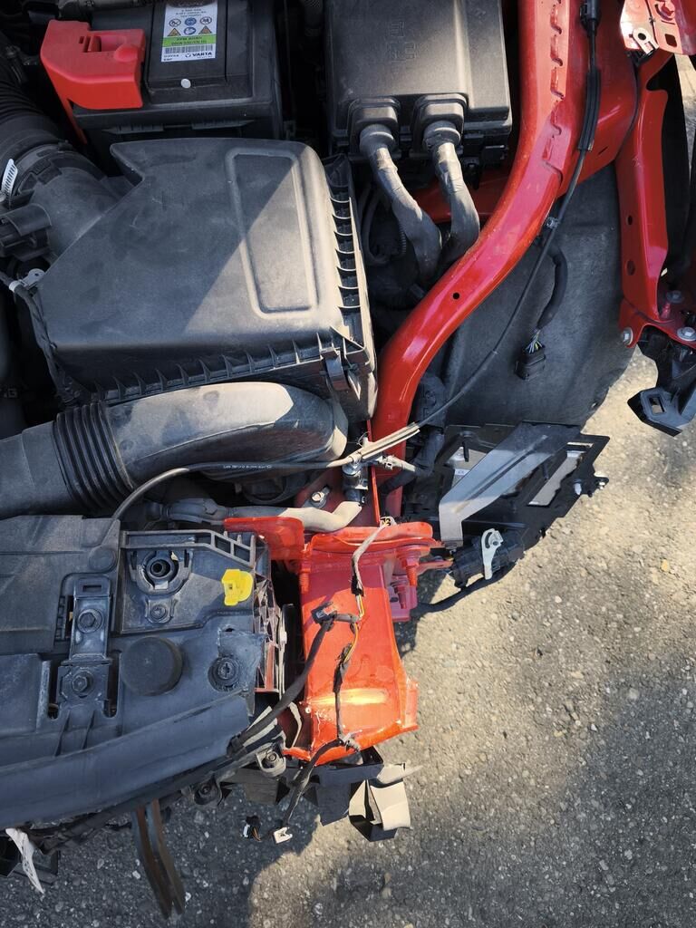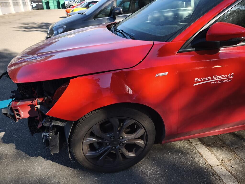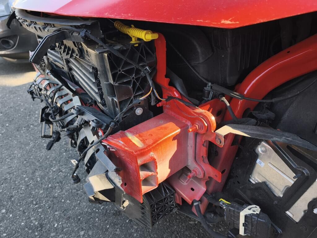 Beschädigt, deformiert und /oder gestaucht wurde die komplette Stossstange vorne, die Sensoren mittig (alle), der Aufprallträger inkl. Aufnahmen, die Längsträger, das Kühlerpaket, die Scheinwerfer, die Motorhaube, der linke Kotflügel und die Türe vorne links.