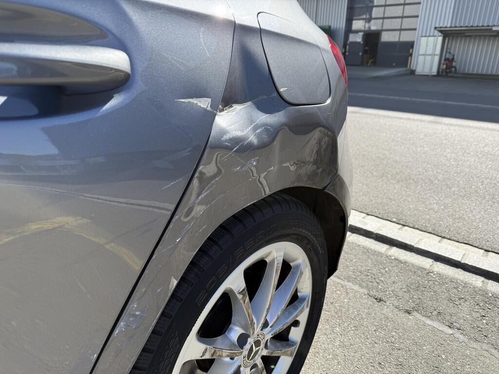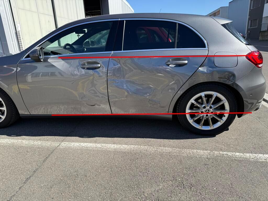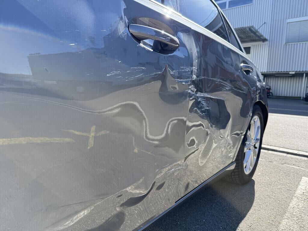 | Opis uszkodzen: | Kollision - Seite links: - Beide Türen und Seitenwand deformiert - Stossfänger hinten deformiert - Kontaktspuren an Felge HL - Türaussengriffe und Tankdeckel verkratzt - Risiko: Radaufhängung! |