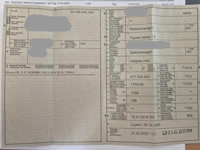 | Sonderausstattung: | 900 CHF | Reparaturkosten: | 13339 CHF |
