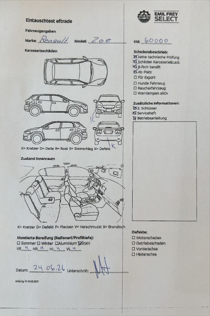 Uszkodzenia Opis uszkodzen: Keine technische Prüfung (Werkstatttest) vorgenommen
