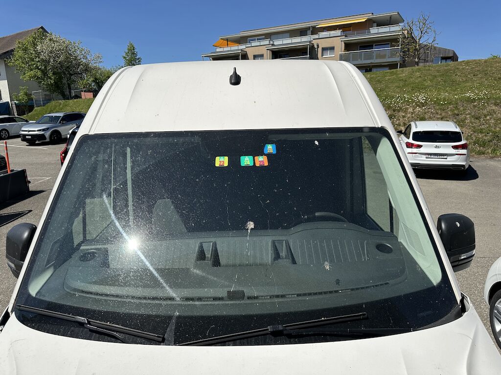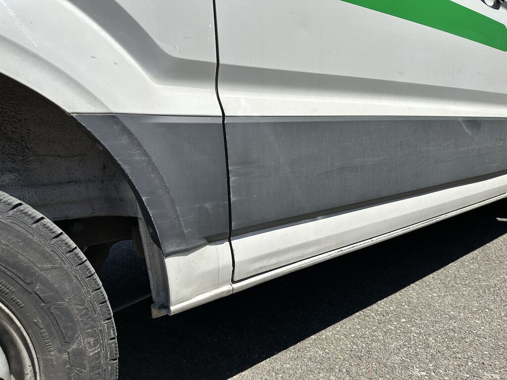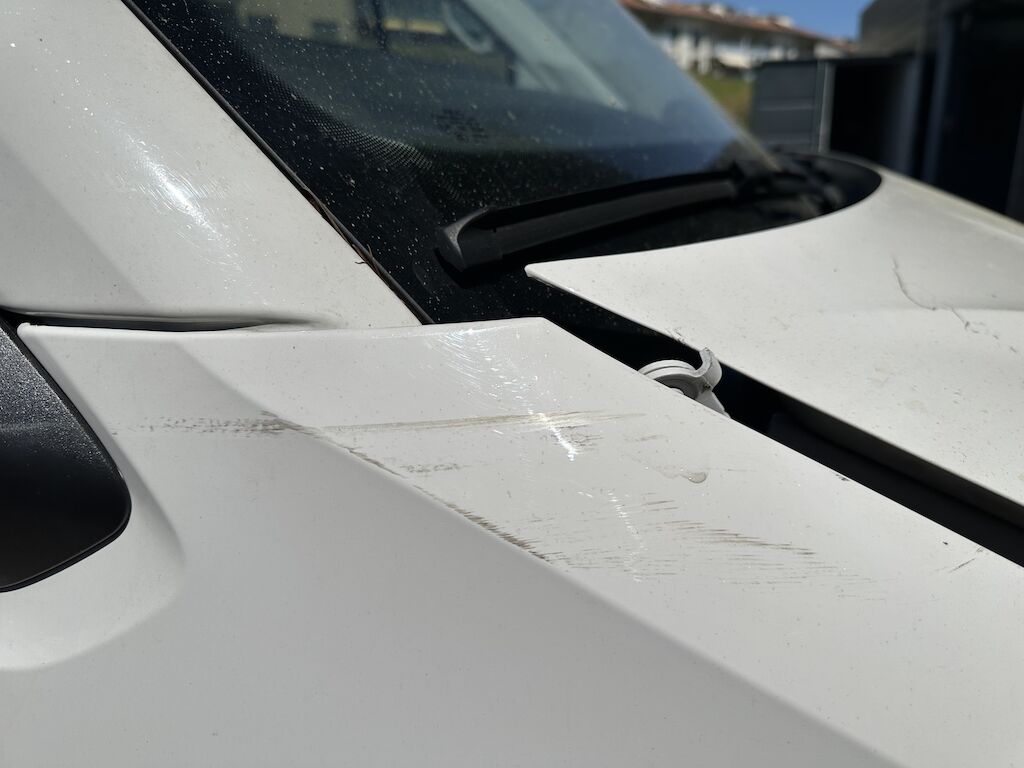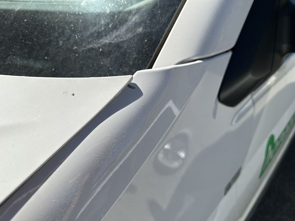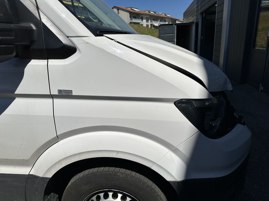 Das Fahrzeug hat diverse Dellen und Lackschäden.