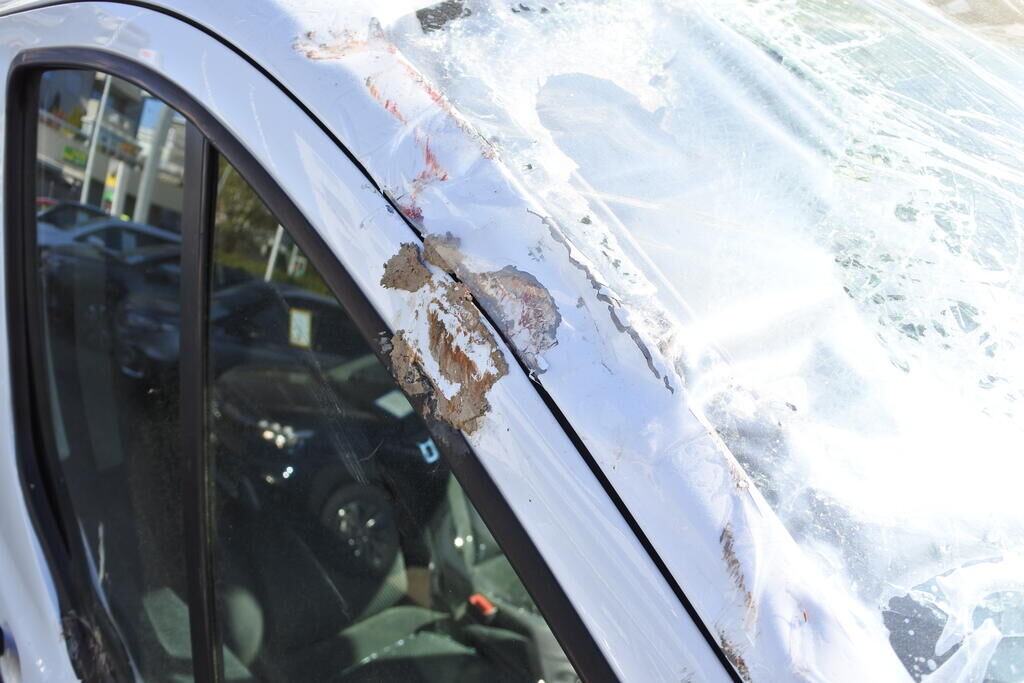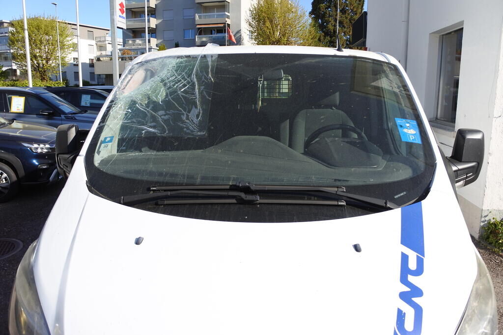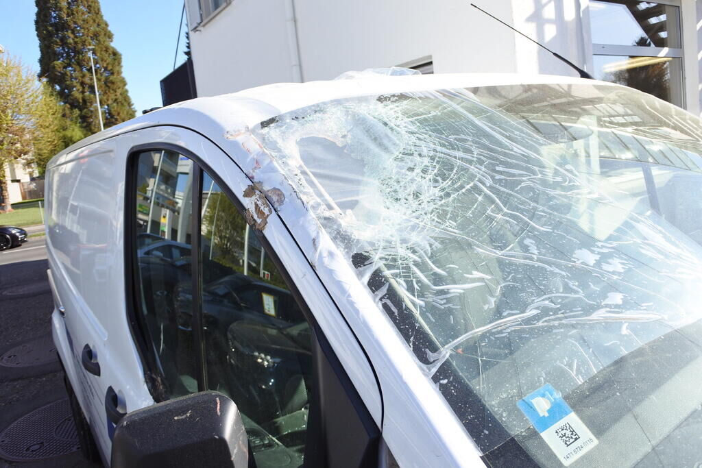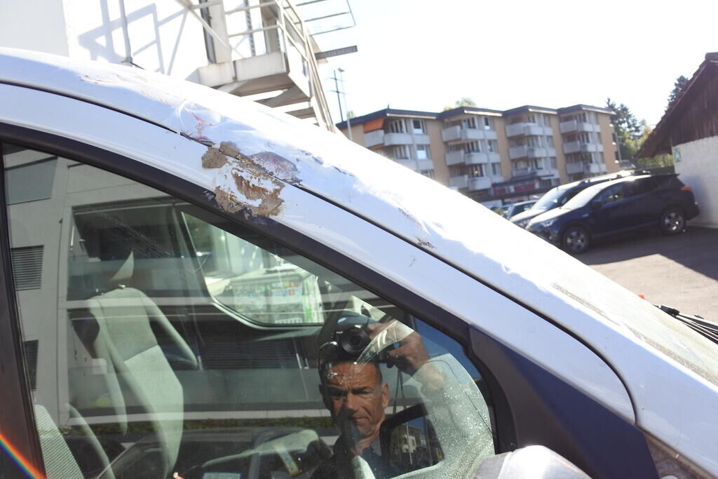 Die Motorhaube, die Frontscheibe, das Dach, die A-Seule, der Kotflügel. die Fahrertür sowie der Rückspiegel sind beschädigt.