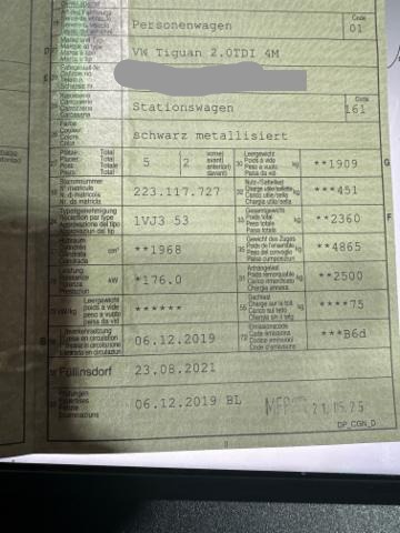 Wichtige HinweiseDemontagePersönliche Gegenstände oder Ladegut im Fahrzeug werden entfernt. Zustand Fahrzeug ist rollbar. Batterie leer. Bereifung Zweiter Radsatz vorhanden Sonstiges Fahrzeugdokumente vorhanden. Investitionsbelege vorhanden. Standzeit Das Fahrzeug wurde lange nicht gefahren Weitere wichtige Hinweise Bei km 133592 am 02.06.2025 Zahnriemen ersetz BeschädigungenRechts Rechte Seite beschädigt. Anstoss rechts im Bereich der B-Säule. Front Front eingedrückt. Frontblech/Maskenblech eingedrückt. Motor Alle Kühler vorne sind eingedrückt. Beschädigungen Sonstige Schäden Div.Carrosserie Teile sind leicht beschädigt. AusstattungSerienaustattung Gepäckraumabdeckung Textilfussmatten vorne + hinten Höhenverstellbare Vordersitze Airbag Fahrer und Beifahrerseite Kindersitz-Vorbereitung Isofix Innenspiegel automatisch abblendbar Regensensor Lenksäule mit Höhen- und Längseinstellung Vordersitze beheizbar Zentralverriegelung mit Funkfernbedienung Aussenspiegel elektrisch verstellbar und heizbar Elektrische Fensterheber vorne + hinten Dachreling eloxiert Lendenwirbelstützen Vordersitze Deaktivierung Beifahrerairbag Pack Chrom Mittelarmlehne vorne mit Ablagebox Seiten- und Heckscheibe hinten abgedunkelt Beifahrer Sitzlehne umklappbar Schubladen unter den Vordersitzen ESP/ EDS/ ASR/ ABS/ BA Auto-Hold-Funktion Reifenkontrollanzeige RKA Pack Winter Rücksitzbank und -lehne asymmetrisch geteilt umklappbar Dieselpartikelfilter Elektronische Parkbremse ParkPilot vorne + hinten Adaptive Fahrwerksregelung DCC Nebelscheinwerfer vorne/ Abbiegelicht Knieairbag Fahrer LED Heckleuchten Spurhalteassistent Lane Assist Kopfairbag vorne und hinten inkl. Seitenairbag vorne Multifunktions-Lederlenkrad 3-Speichen Elektronische Differentialsperre XDS Stop + Start System mit Brems-Energie-Rückgewinnung Dynamische Fernlichtregulierung Dynamic Light Assist Klimaanlage Climatronic 3-Zonen Müdigkeitserkennung Keine Gewähr auf die Angaben der Serienausstattungen Proaktives Insassenschutzsystem Digitaler Radioempfang DAB+ Automatische Distanzregelung ACC mit Front Assist Geschwindigkeitsregelanlage inkl. Geschwindigkeitsbegrenzer Radiosystem Composition Media Front Assist [Umfeldüberwachungssystem] LED-Scheinwerfer mit LED-Tagfahrlicht Active Info Display Leichtmetallräder 18" Kingston Security & Service/ Notruf SonderausstattungAnhängevorrichtung schwenkbar Garantie+ 4 Jahre/ 100'000 km Perlmutteffekt-Lackierung Pack R-Line Interieur Exterieur Black Pack Swissline Ausstattung Sommerräder MIT Leichtmetall-Felgen. Sonstige Ausstattung und Zubehör Schutzpaket |
