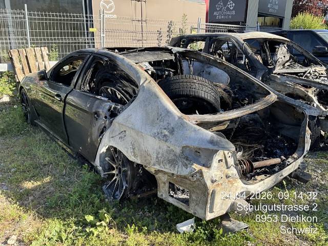 Beschreibung der Schäden: Fahrzeug ausser Motorraum ausgebrannt. Risiko Motorraum , Kabelstränge und Elektronik / Steuergeräte die der Hitze ausgesetzt waren, möglicherweise beschädigt.