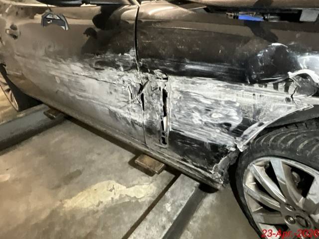 Beschreibung der Schäden: Der Kotflügel links und rechts, die Radaufhängung links und rechts, das Radhaus rechts, die Motorhaube, die Felgen vorne, die Seitentüre rechts, die Seitenwand sind deformiert.