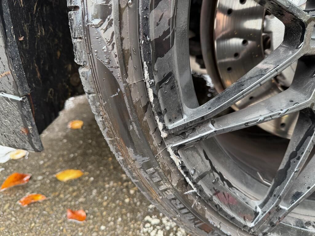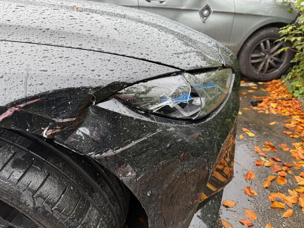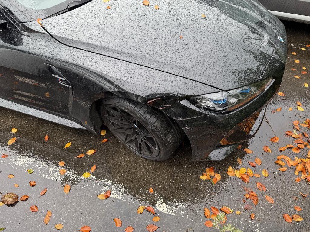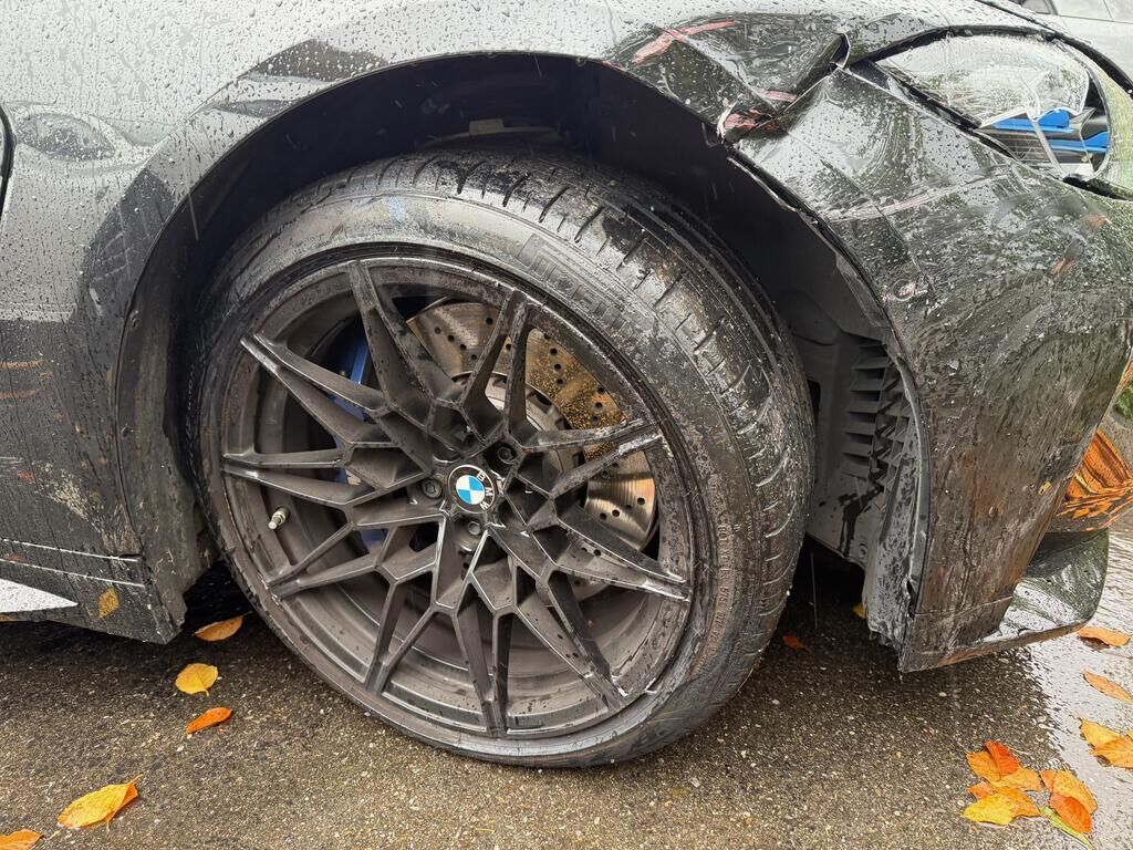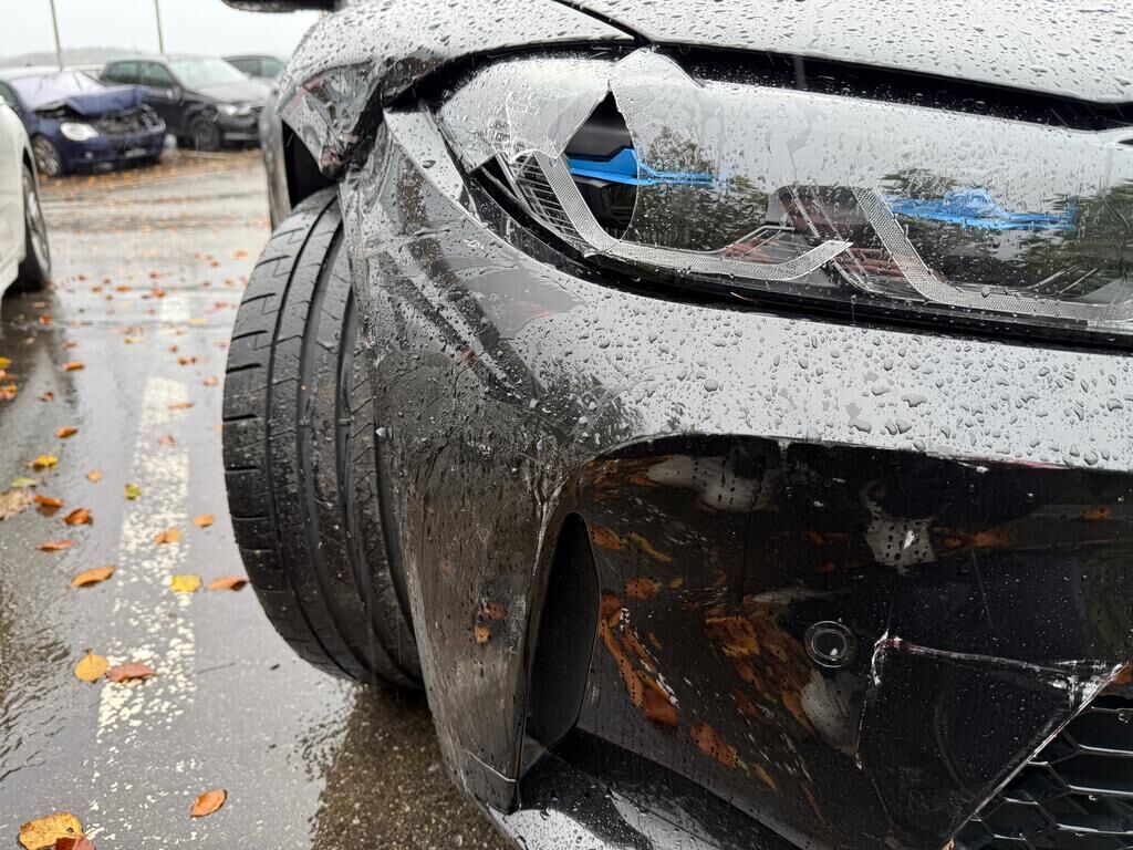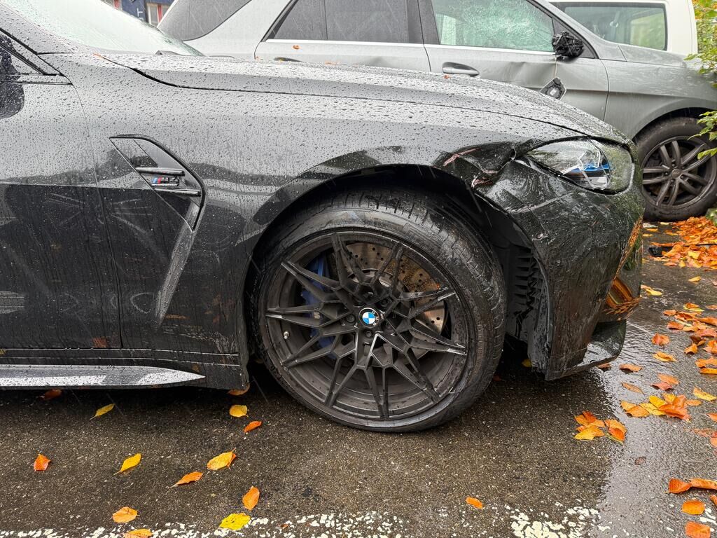 - Radaufhängung deformiert, Rad steht komplett schräg