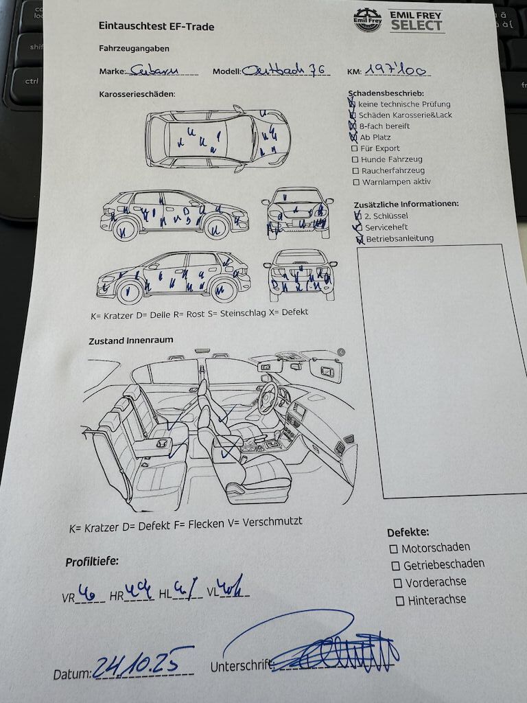 Uszkodzenia Opis uszkodzen: Keine technische Prüfung (Werkstatttest) vorgenommen