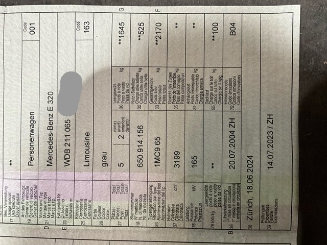 Wichtige HinweiseZustandFahrzeug muss transportiert werden [Höhe und Breite beachten]. Fahrzeug ist NICHT fahrbar. Fahrzeug ist NICHT rollbar. BeschädigungenAchse Aufhängungsteile vorne rechts beschädigt. Risiko Lenkung. AusstattungSerienaustattung Klimaautomat Airbag Fahrer und Beifahrerseite Elektronische Wegfahrsperre Radio/ CD Elektrische Fensterheber vorne + hinten Aussenspiegel elektrisch verstellbar und heizbar Wärmedämmendes Glas ABS Antiblockiersystem Servolenkung Seitenairbag Fahrer und Beifahrerseite ESP Elektronisches Stabilitätsprogramm Fahrer- und Beifahrersitz elektrisch verstellbar Nebelscheinwerfer Zentralverriegelung mit Fernbedienung Aussentemperaturanzeige Heizbare Scheibenwaschdüsen Lenkrad verstellbar Speedtronic Windowbag Multifunktionslenkrad Regensensor Zentralverriegelung mit Innenschalter Leichtmetallräder 7-Loch-Design Sitzbelegungserkennung für Beifahrerairbag Bremsassistent EBA Fahrerinformationssystem/ Bordcomputer 12 V Steckdose 2x Kindersitzerkennung im Beifahrersitz Parameterlenkung/ Direktlenkung Edelholzausführung Calyptus Keine Gewähr auf die Angaben der Serienausstattungen SonderausstattungCD-Wechsler Sound-System/ HiFi Lautsprecher System Multikontursitz vorne links Multikontursitz vorne rechts Elektrisches Sonnenschutzrollo für Heckscheibe Glasschiebe-/ Hebedach elektrisch Scheinwerfer Waschanlage Metallic-Lackierung Sportfahrwerk Innen- und Fahreraussenspiegel automatisch abblendbar Vorausrüstung für Telefon mit Freisprecheinrichtung Lederlenkrad mit Lederschaltknauf Sonnenschutzrollo für Seitenfenster hinten Memory für Fahrersitz/ Aussenspiegel/ Lenkrad Ausstattung Avantgarde Parktronic Alarmanlage mit Abschleppschutz Innenraumüberwachung Komfortsitze vorne inkl. Belüftung und Sitzheizung Bi-Xenon-Scheinwerfer+Waschanlage/ aktives Kurvenlicht Antenne für Telefon Comand APS Navigationssystem/ Radio/ DVD |