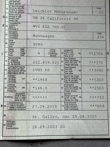 Wichtige HinweiseZustandFahrzeug muss transportiert werden [Höhe und Breite beachten]. Fahrzeug ist fahrbar. Fahrzeug lag auf der Seite. Sonstiges Fahrzeugdokumente vorhanden. Weitere wichtige Hinweise Motor läuft! Fahrzeug lag auf der R Seite! BeschädigungenLinks Anstoss links im Bereich der B-Säule. Motor Risiko Motor. Achse Risiko Vorderachse. Risiko Hinterachse. Elektrik Risiko Steuergeräte. Glas Heckscheibe ist zerbrochen / beschädigt. Türscheibe vorne rechts ist zerbrochen / beschädigt. Unterboden Beschädigungen Bodengruppe verzogen/beschädigt. Sonstige Schäden Div.Carrosserie Teile sind leicht beschädigt. Div. Roststellen am Fahrzeug. Weitere Beschädigungen Heckklappe, Dach, Seite R und L beschädigt! Innenausbau und diverse Verkleidungen beschädigt! Markise beschädigt! AusstattungSerienaustattung Airbag Fahrer und Beifahrerseite Elektrische Fensterheber vorne Aussenspiegel elektrisch verstellbar und beheizbar Servolenkung Schiebetüre rechts Elektronische Wegfahrsperre Sitzheizung Fahrer- und Beifahrerseite Zentralverriegelung mit Fernbedienung Heckscheibenwischer ESP Elektronisches Stabilitätsprogramm Aufstelldach mit Doppelbett Heckklappe 12V Steckdose Vorbereitung für Dachträger Sitzbezüge in Stoff Tagesfahrtlichtschaltung Seiten- und Kopfairbag vorn ABS + EDS + ASR Kunststoffboden hinten Servoschliessung Heckklappe Servoschliessung Schiebetür rechts Park-Distanz-Sensor vorne + hinten Geschwindigkeitsregelanlage Standheizung mit Zeitschaltuhr u. Fernbedienung Kindersitz- Vorbereitung ISOFIX Schiebefenster im Fahrgastraum vorne links Stossstange in Wagenfarbe Dieselpartikelfilter Kindersicherung für Türen Wärmeschutzverglasung Teppich-Fussmatten im Fahrerhaus Aussenspiegel elektrisch anklappbar Berganfahrassistent Reifen-Reparatur-Kit Pack Licht und Sicht Schiebefenster m. Fliegengitter im Fahrgastraum vorne rechts Nebelscheinwerfer vorne und Abbiegelicht Multifunktions-Lederlenkrad + Bedienung für Radio u. Telefon Reifendruckkontrollanzeige Scheinwerfer Waschanlage und heizbare Scheibenwaschdüsen Klimaanlage CLIMATRONIC vorne + hinten Dämmglas und abgedunkelte Scheiben im Fahrgastraum Stop + Start System Multifunktionsanzeige Premium mit TFT-Farbdisplay Keine Gewähr auf die Angaben der Serienausstattungen Komfort Schlafauflage für 2er Sitzbank Leichtmetallräder 17" Cascavel zweifarbig Lederbezug für Lenkrand und Schalthebel 230V Steckdose DAB+ [Digitaler Radioempfang] Markisenschiene schwarz 2 Drehsitze vorne mit Armlehnen 2er Sitzbank hinten LED-Scheinwerfer/ LED-Rückleuchten Radio Composition Media Innenleuchtenkonzept Camper Comfort Plus Aufstelldach elektrohydraulisch 17" Fahrwerk mit 17" Bremsanlage Schiebefenster m. Fliegengitter im Fahrgastraum vorne links SonderausstattungMetallic-Lackierung Sitzbezüge in Leder-Alcantara Anhängerkupplung abnehmbar Reserverad mit Alufelge Markise Park-Distanz-Sensor vorne und hinten mit Rückfahrkamera 2 Schlüssel mit Funkfernbedienung Automatische Distanzregelung ACC mit Front Assist/ 160 km/h Mobiltelefon-Schnittstelle Comfort 2 USB-Schnittstellen und Multimediabuchse AUX-IN Navigationssystem Discover Media Plus Bergabfahrassistent Sprachbedienung und elektronische Sprachverstärkung Holzbodenoptik hinten Ausstattung Anhängerkupplung Klimaanlage Leichtmetall-Felgen Navigationsgerät Rückfahrkamera Rückfahrsensoren Tempomat Metallic-Lackierung ABS [Anti-Blockier-System] Winterräder MIT Leichtmetall-Felgen. Seite 3 von www.swisscrashcars.ch 24.10.2025 17.31 9 Auktion Nr. 323382 Swiss Crash Cars |